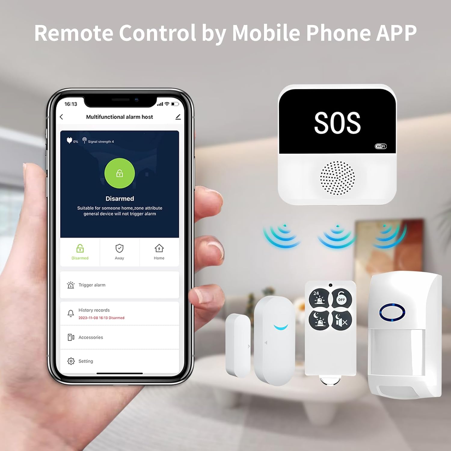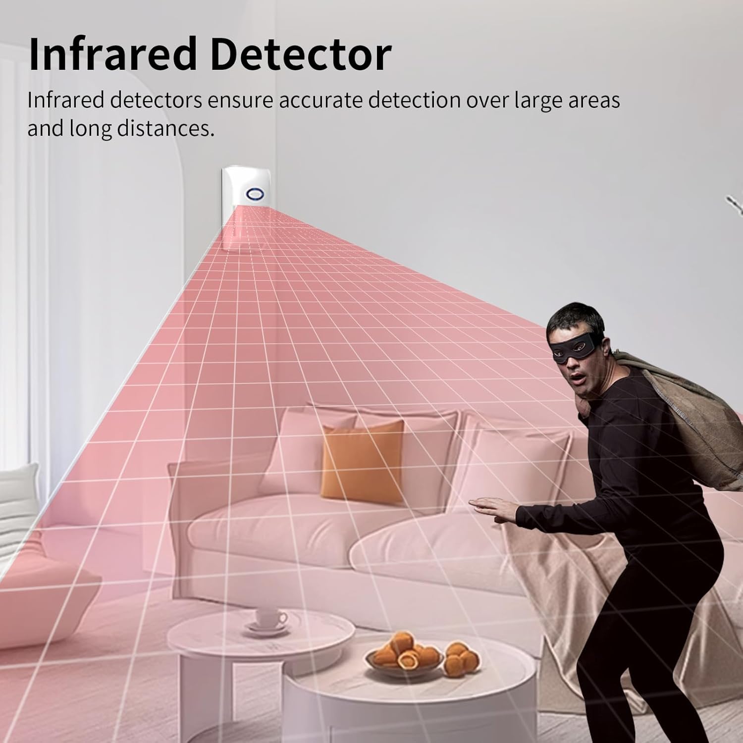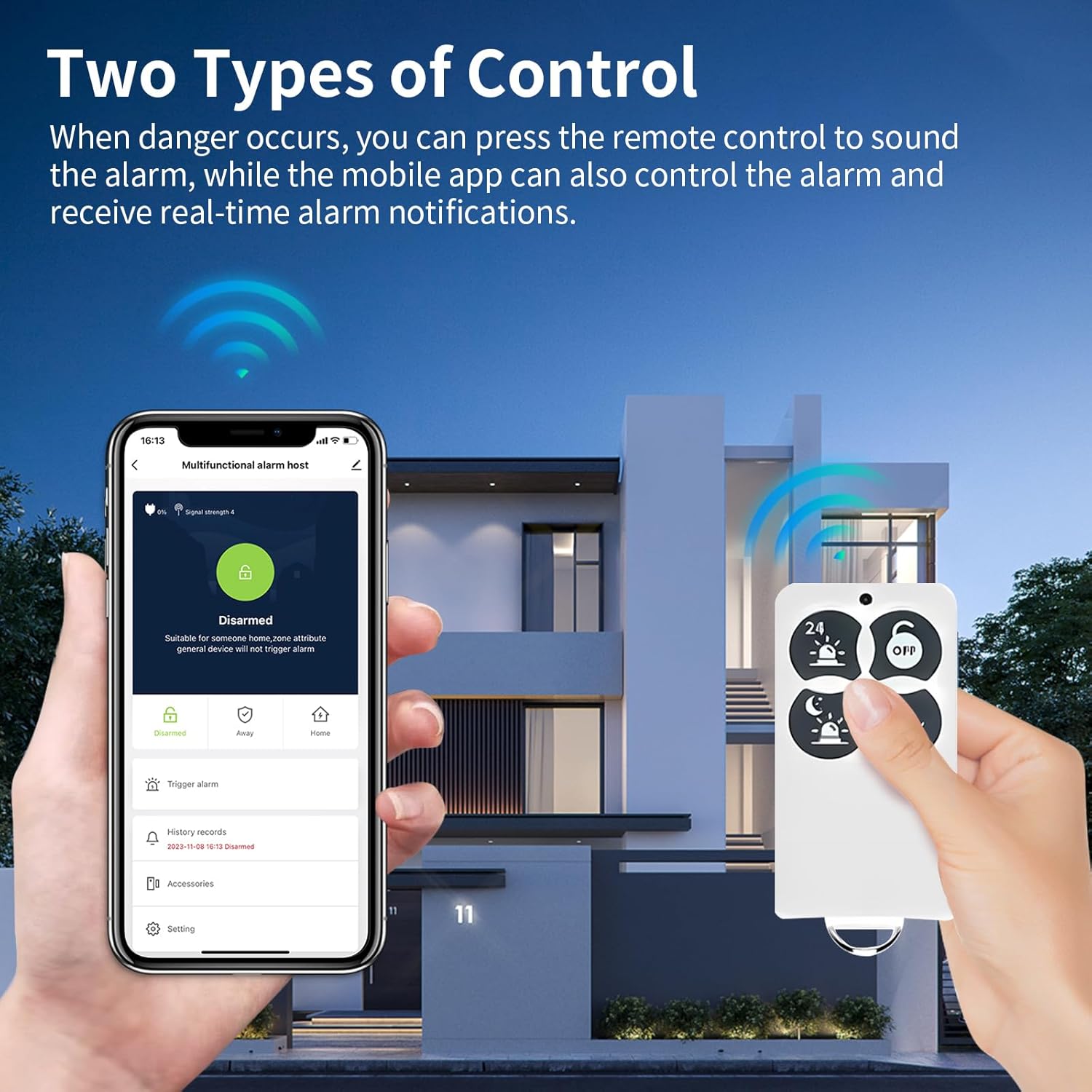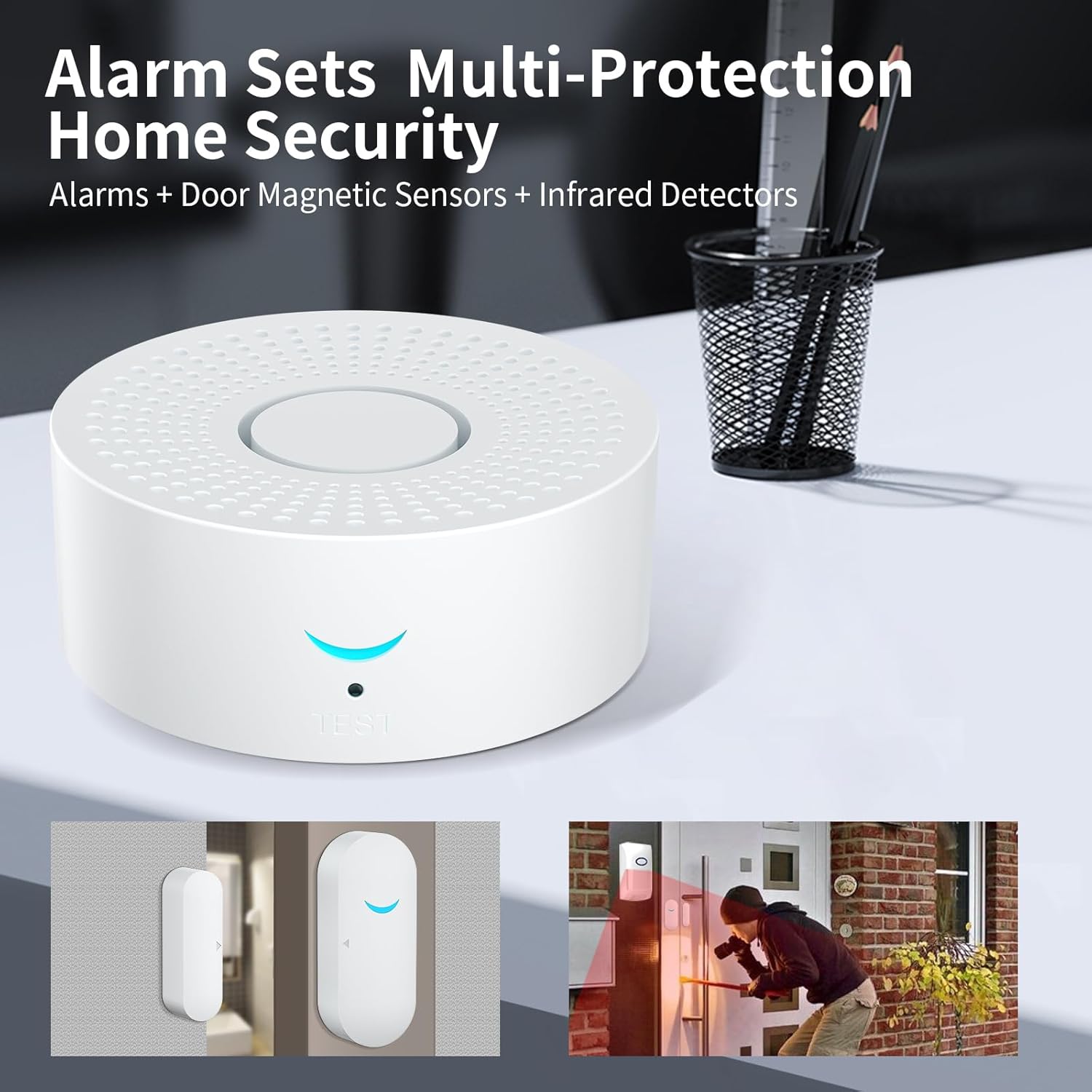 【ALARM NOTIFICATIONS】:When someone illegally opens your doors and windows to enter your home or flat, the smart door and window detectors and infrared detectors will send an alert to the smart alarm, and your mobile phone will receive a real-time notification of the alarm alert. Multiple alarm protection to deter thieves