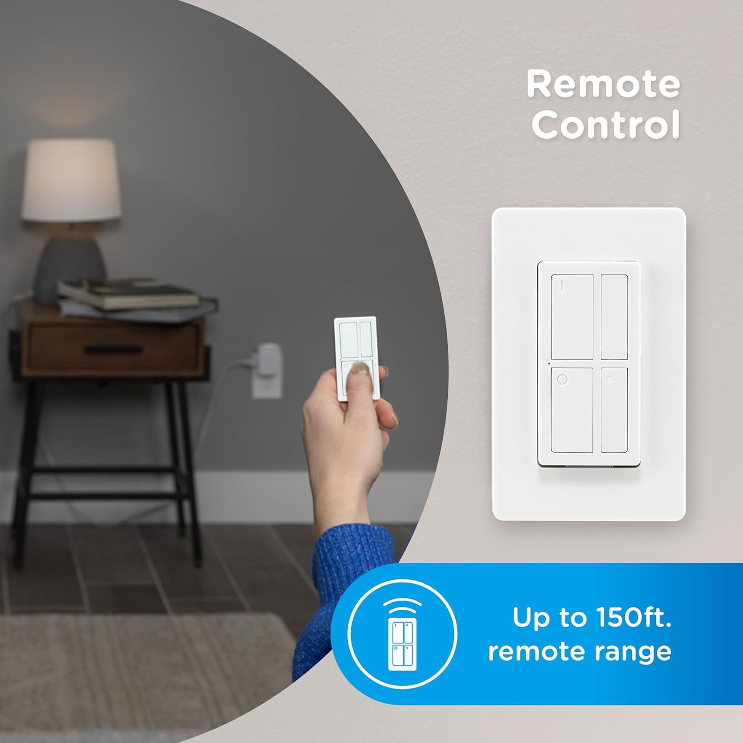 Work Remotely – Battery-powered remote allows ON/OFF control and brightness adjustment from up to 150ft. without requiring Wi-Fi; CR2032 battery included