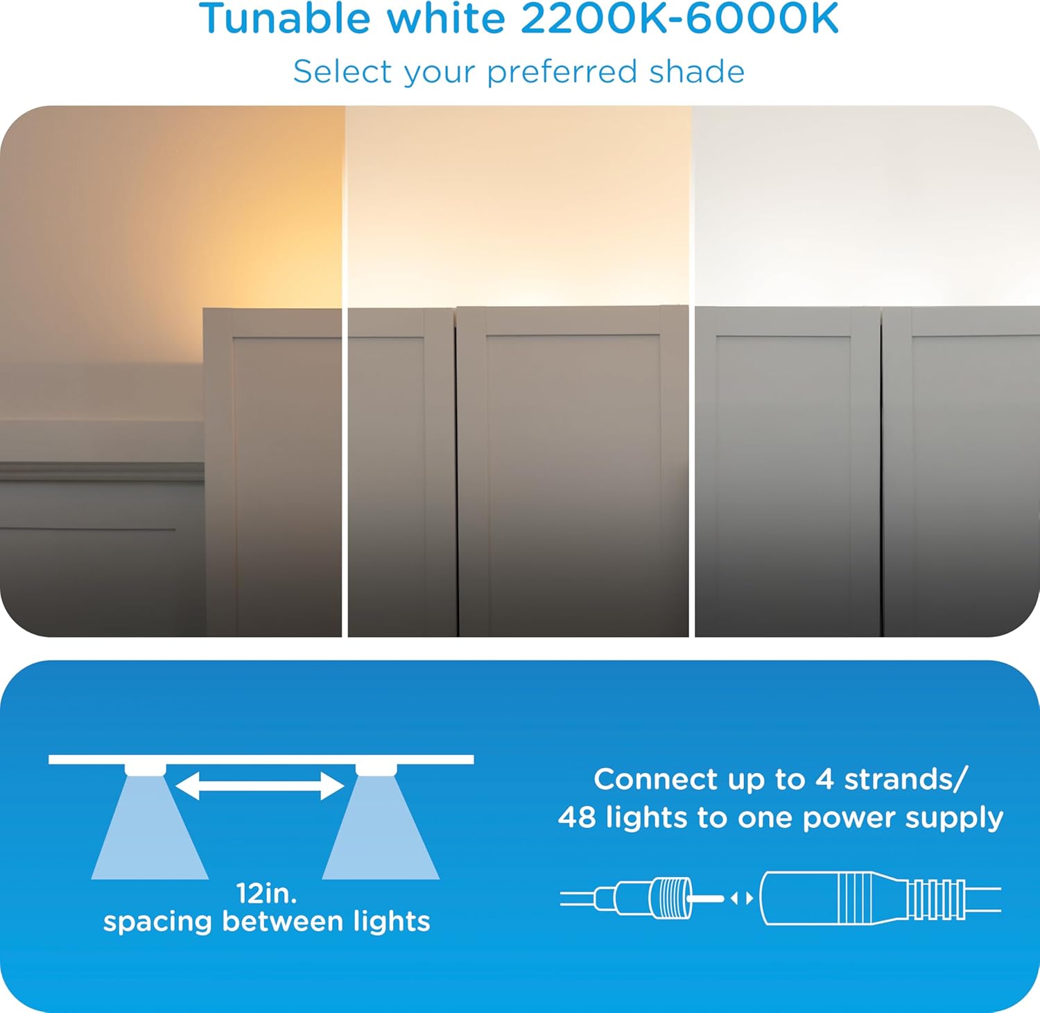 Easy Install — Mounting hardware included; premium white cord fits perfectly against flat surfaces and 90-degree corners to blend with your décor; add Enbrighten Extension Strands (model# 85839) for a max of four strands or 48 lights per power source
