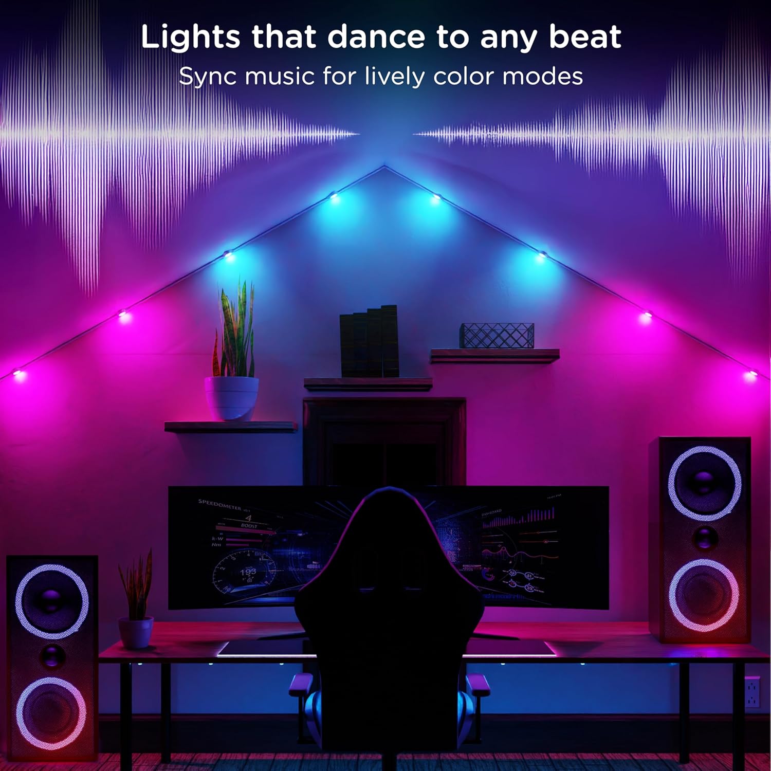 Immerse your indoor space with the color-changing splendor of Enbrighten VIBE Spectrum Wall Lights. This strand of 12 lights is perfect for home theaters, game rooms, kitchens, bedrooms, hallways and more. They provide endless color combinations, dynamic modes, customizable effects and MusicSync for your ultimate lighting setup. Each LED is expertly crafted using the highest quality RGBWWIC LEDs to provide true-color illumination with full, rich colors.