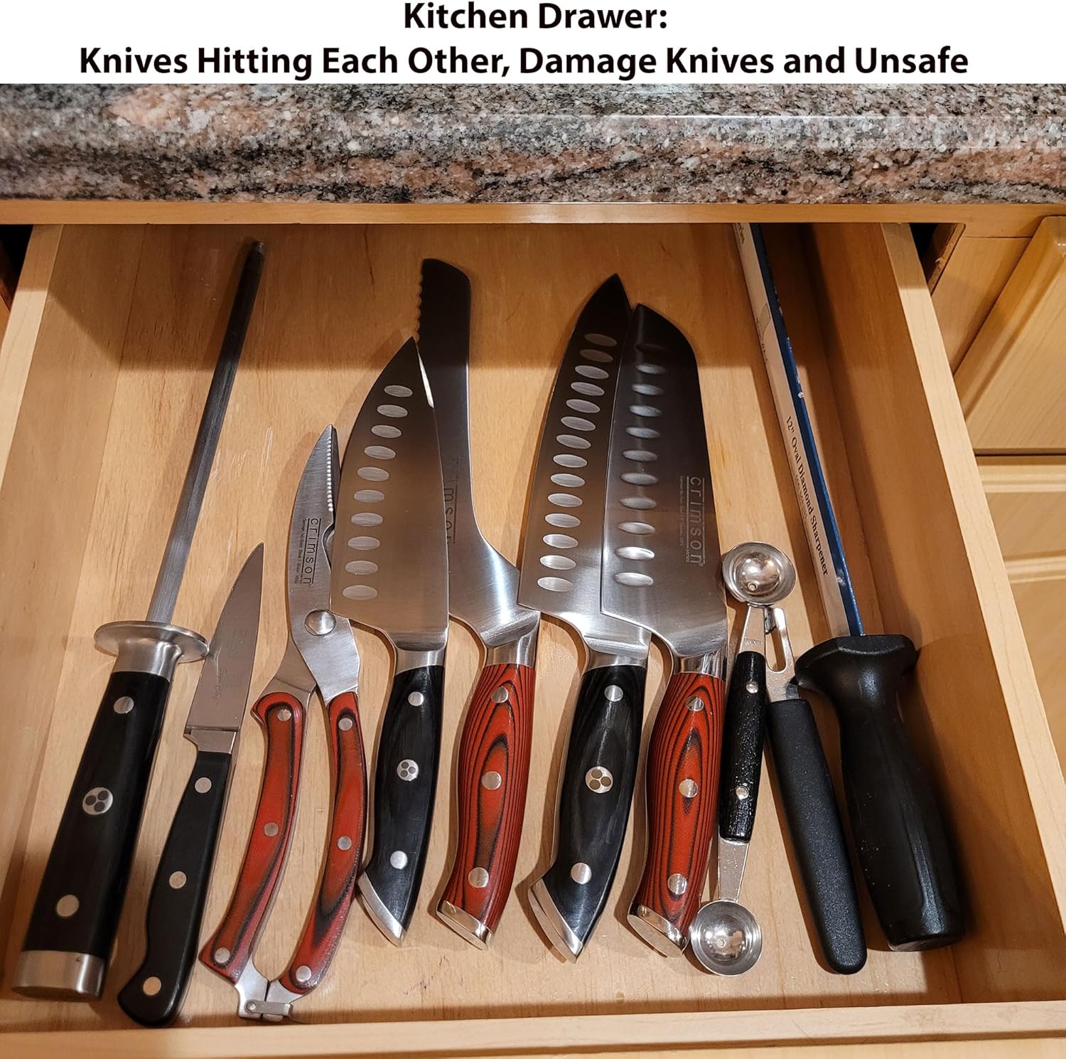 Store and transport knives safely without damaging or dulling their blade edge; protects the edges of your knives and your fingers, too.