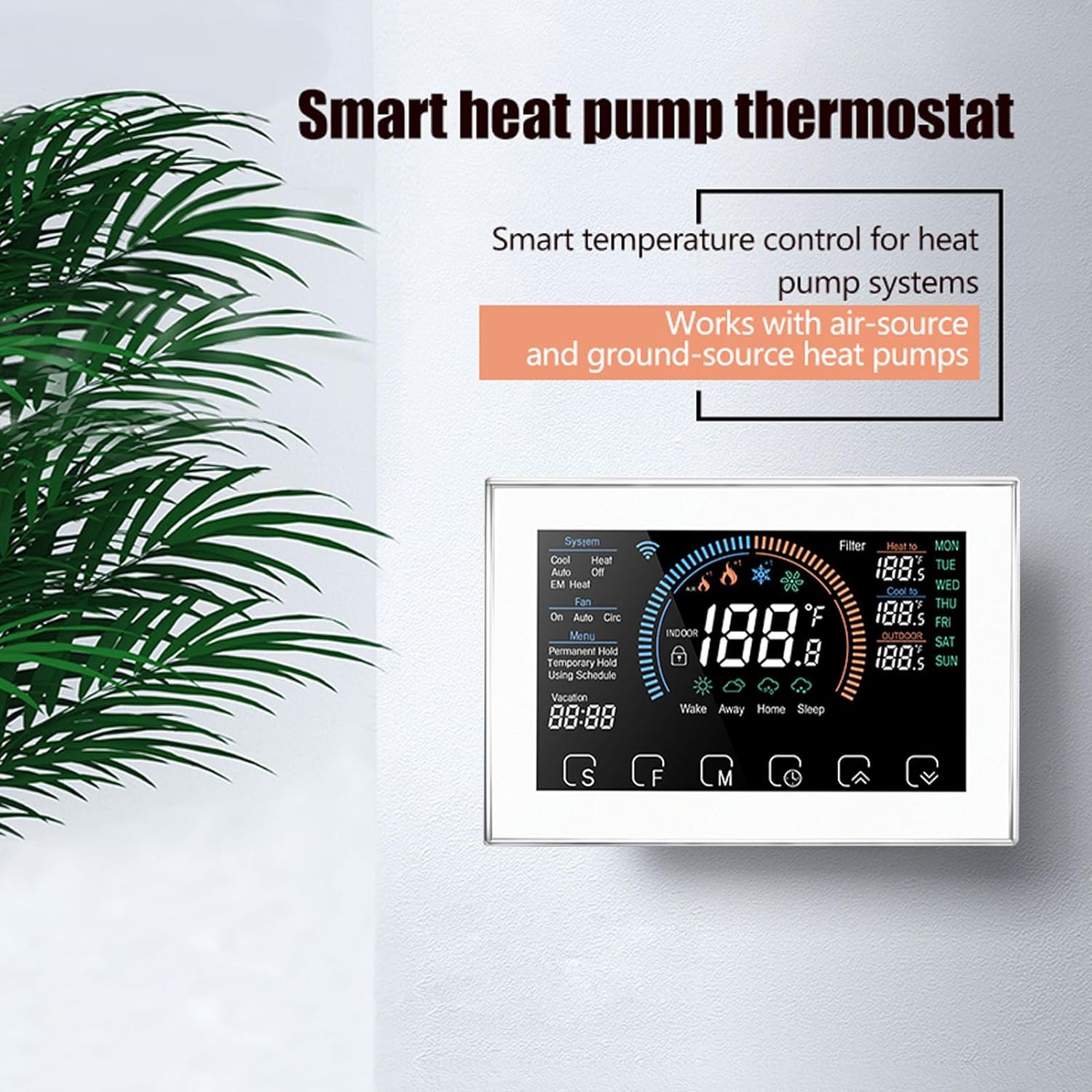 Eujgoov LCD Color Screen Touch Heat Pump Thermostat Smart Voice Control Remote Control Programmable Weather Monitoring (White)