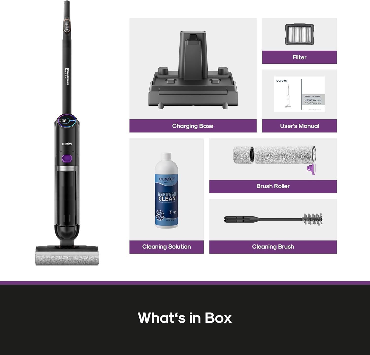 Eureka Cordless Wet Dry Vacuum Cleaner and Mop,170° Reclinable,185°F Hot Air Self-Cleaning Vacuum,Long Run Time,Great for Hard Floors Pet Hair Sticky Messes,RapidWash 730, Purple