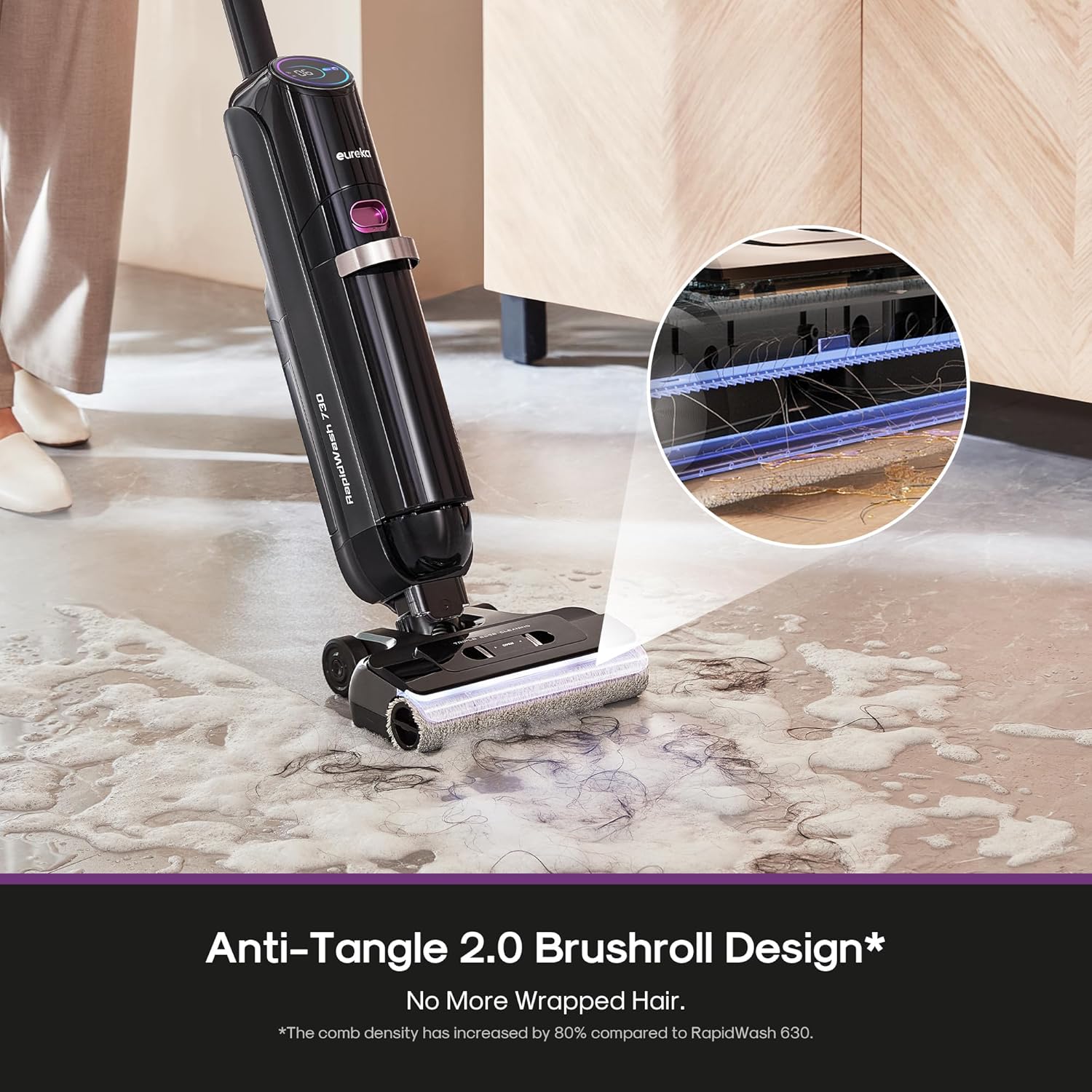 Anti-Tangle 2.0: Perfect for Pet Owners:The Eureka RapidWash Cordless Stick Wet Dry Vacuum features an upgraded Anti-Tangle 2.0 system with 2.5mm spaced, 80% denser stainless steel combs. Its precision construction effectively captures debris and prevents hair tangles, specifically engineered for pet hair removal.