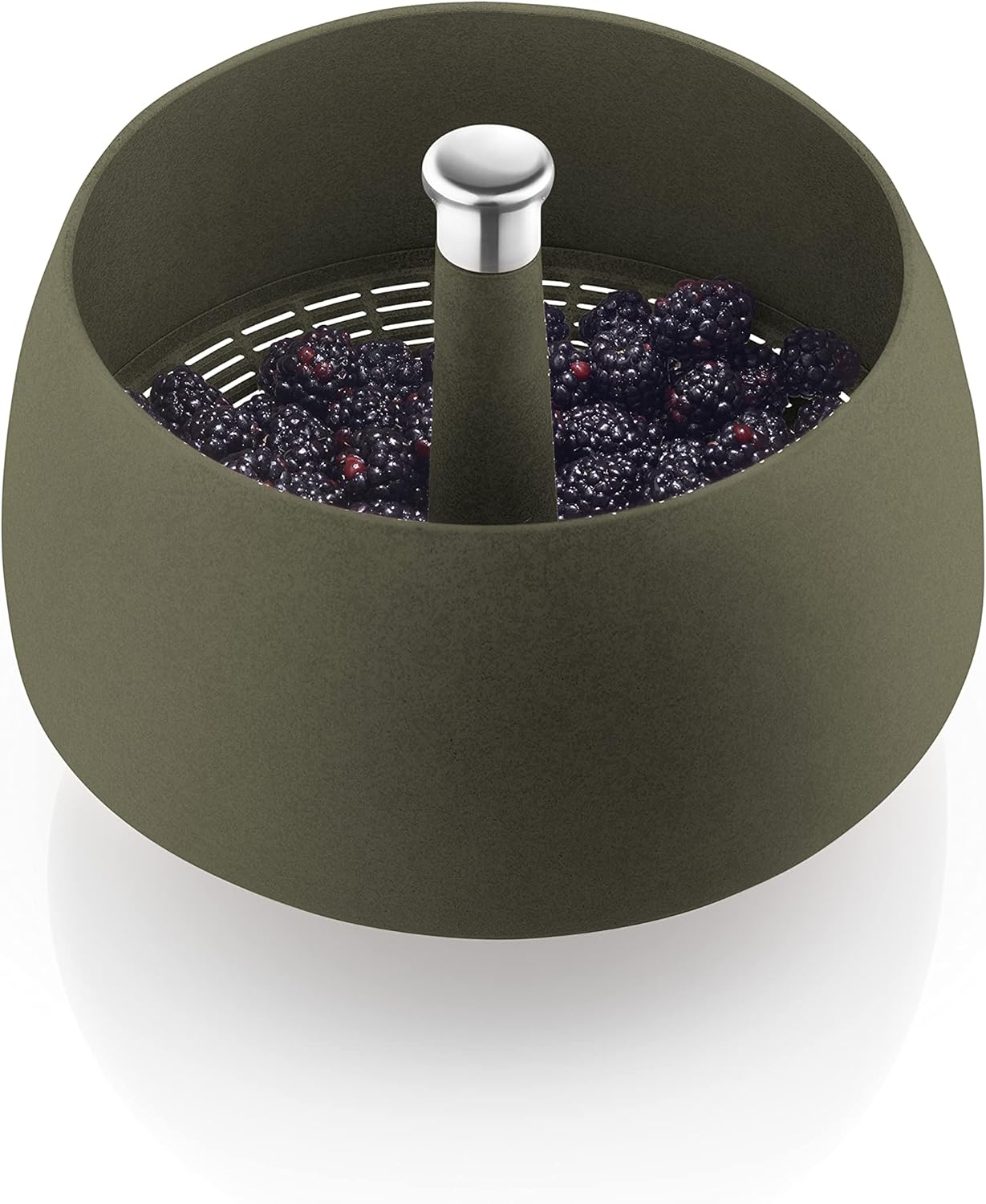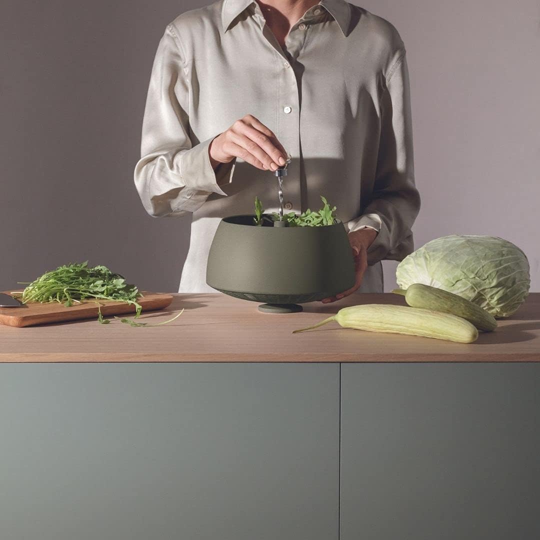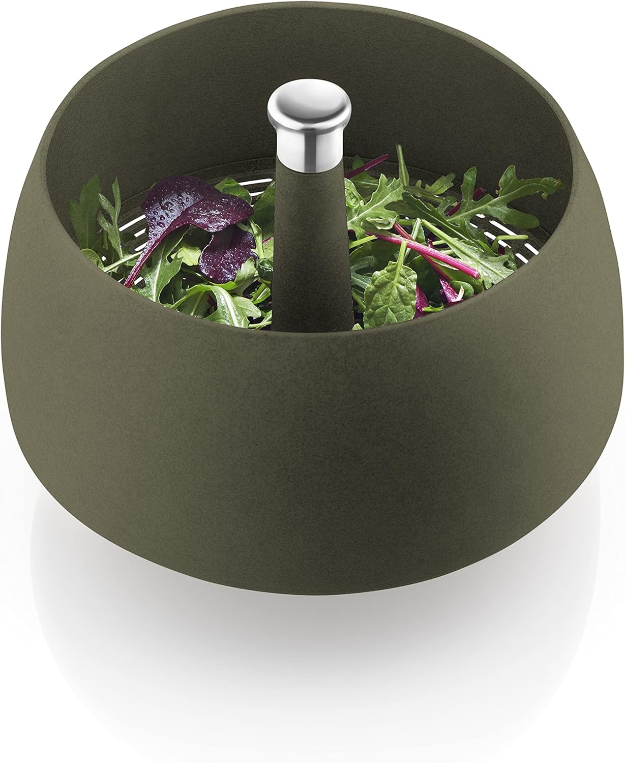 SALAD SPINNER: Two-in-one salad spinner and colander – ingeniously simple. Rinse the lettuce in the spinner, push down on the axle in the middle until all the water has been spun out. The water drains out through the holes in the bottom. It is also perfect for rinsing fruit, draining water from pasta etc.