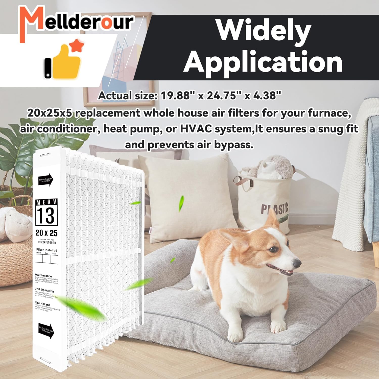 【Widely Application】: Actual size: 19.88″ x 24.75″ x 4.38″.20x25x5 replacement whole house air filters for your furnace, air conditioner, heat pump, or HVAC system,It ensures a snug fit and prevents air bypass.