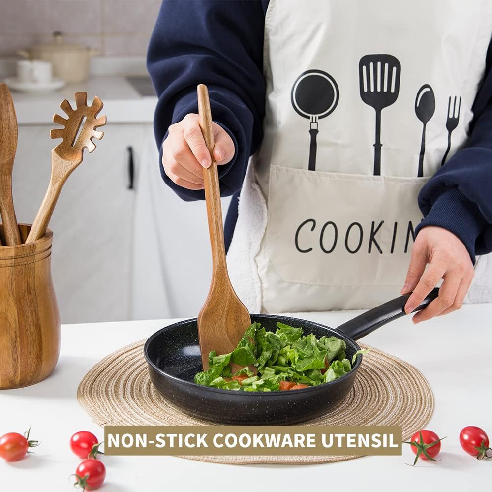 【HEALTHY ACACIA MATERIAL】Our wooden cooking utensils set is carved from one-piece acacia wood, no splicing, high heat resistance, sturdy and food-grade safe material. Each unique piece is enhanced by its distinctive wood grain patterns.