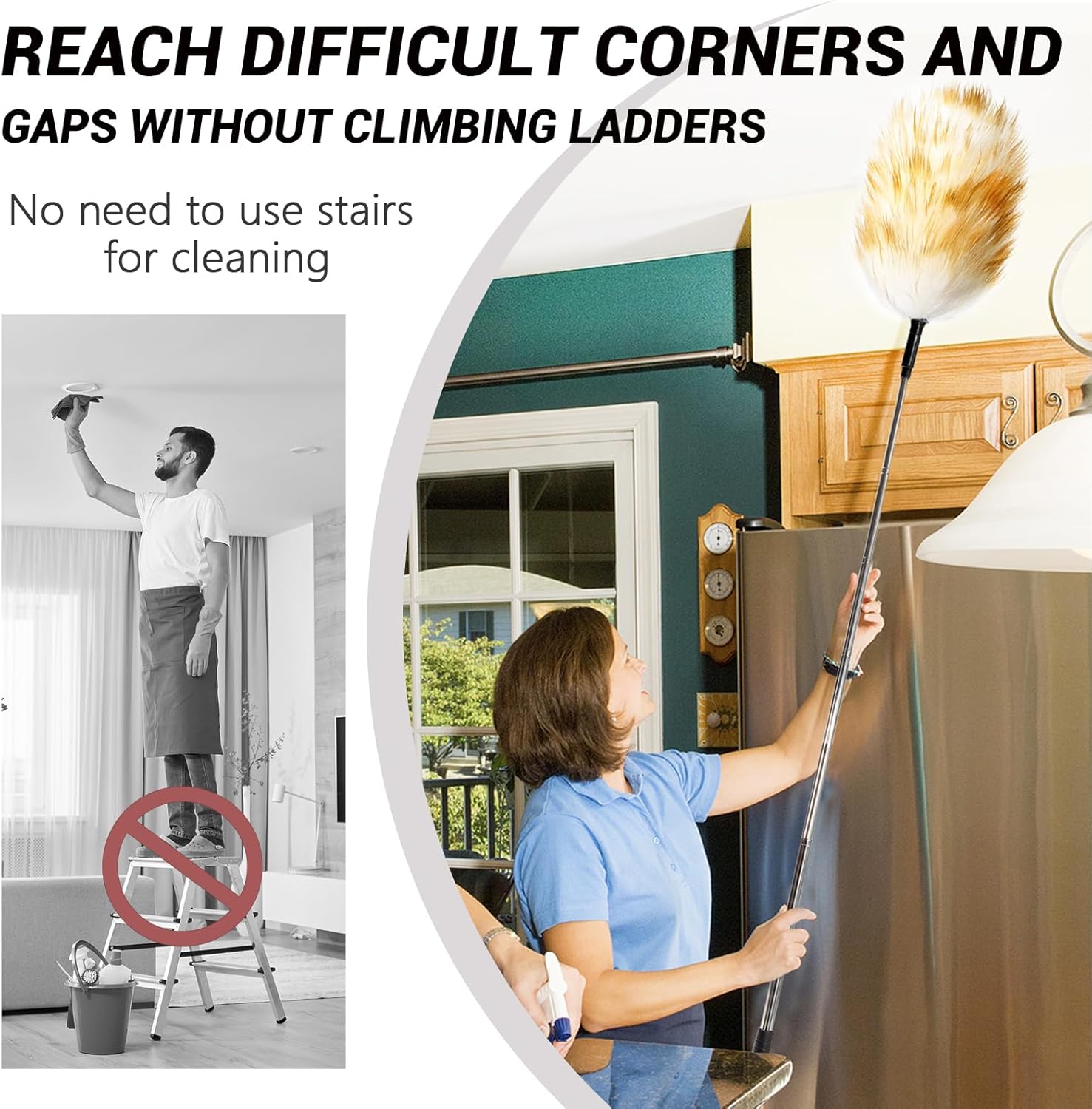 Extendable Design: The aluminum alloy pole can extend up to 55 inches, facilitating the cleaning of hard-to-reach areas such as ceilings, cabinet, and the tops of bookshelves. The extendable feature not only saves time but also enhances safety by reducing the need for unstable climbing aids.
