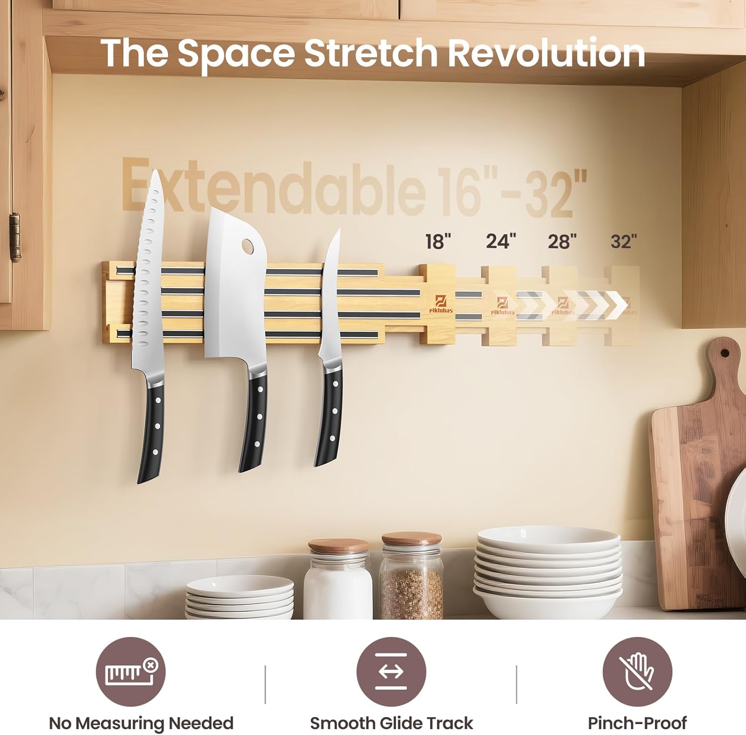 World’s 1st Extendable 16-32 Inch Magnetic Knife Holder for Wall ⇄ extendable magnetic knife strip family safe fsc home kitchen RVs Backsplash garage workshopsextendable magnetic knife strip family safe fsc home kitchen RVs Backsplash garage workshops