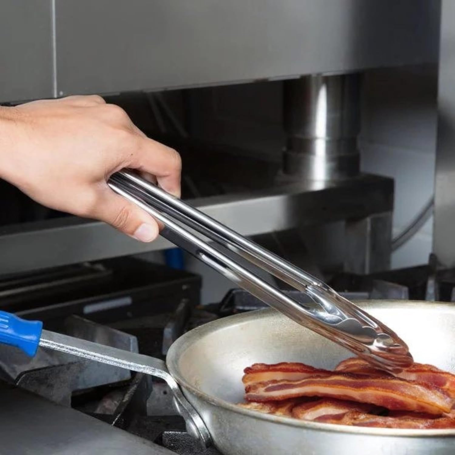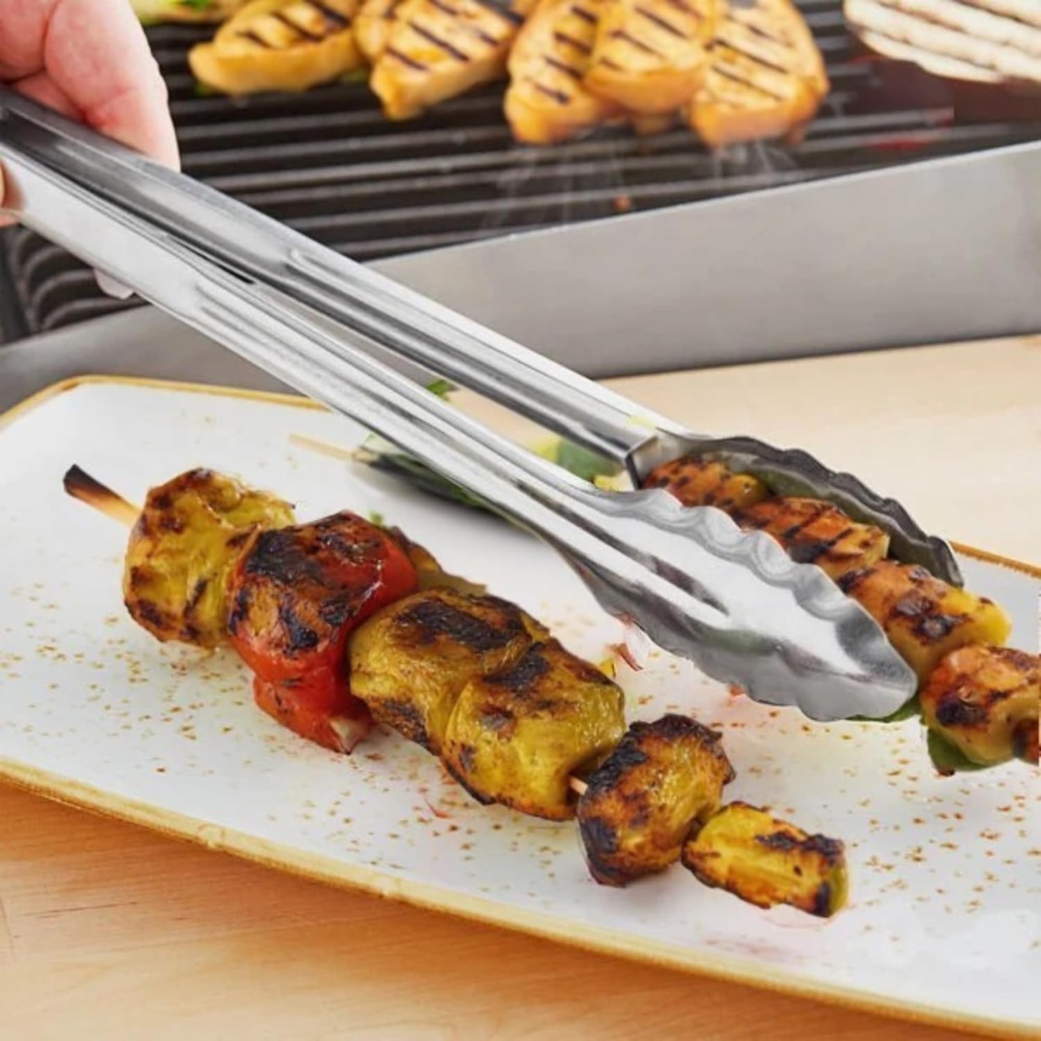𝐂𝐎𝐌𝐌𝐄𝐑𝐂𝐈𝐀𝐋-𝐆𝐑𝐀𝐃𝐄 𝐒𝐓𝐀𝐈𝐍𝐋𝐄𝐒𝐒 𝐒𝐓𝐄𝐄𝐋 – Constructed from durable .9mm stainless steel, these utility tongs are built to support daily use in commercial kitchens, buffets, and food prep stations.