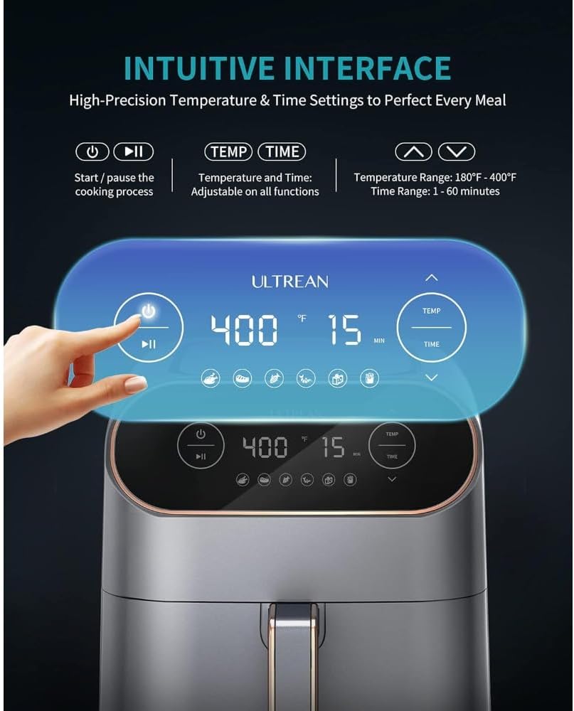 Versatile Presets: Features 6 cooking presets (chicken, steak, fish, shrimp, fries, and grill) for effortless, perfect results every time with just the press of a button.