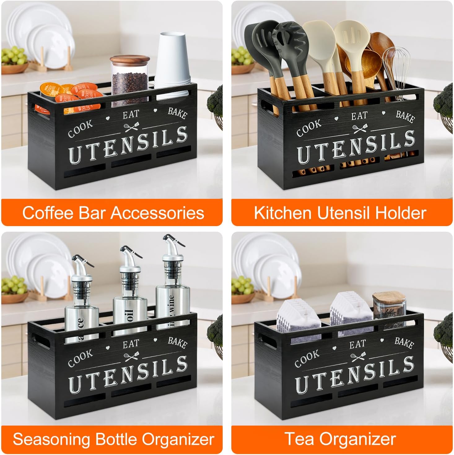 Farmhouse Kitchen Decor: This black kitchen decor complements any kitchen aesthetic—the perfect decorative spatula holder for your countertop, adding warm rustic charm. Makes cooking easier for you.