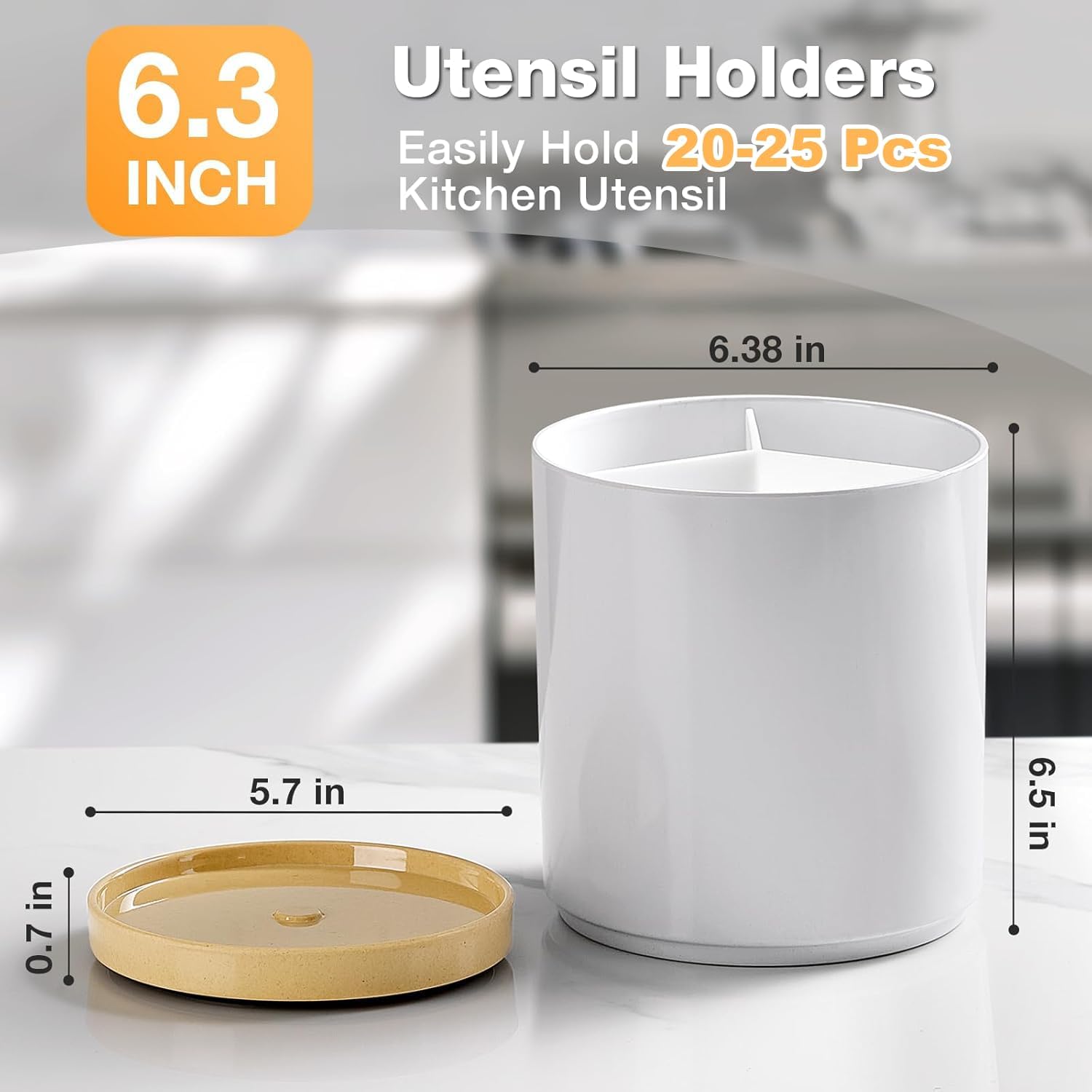 【360° Spinning Utensil Holder】 The utensil holder has an exclusively made 360° rotating base that allows you to more easily reach each piece of utensil in the rotating utensil holder. Silent spin, ensuring a noise-free experience every time. This utensil organizer bringing efficiency and ease to your cooking routine.