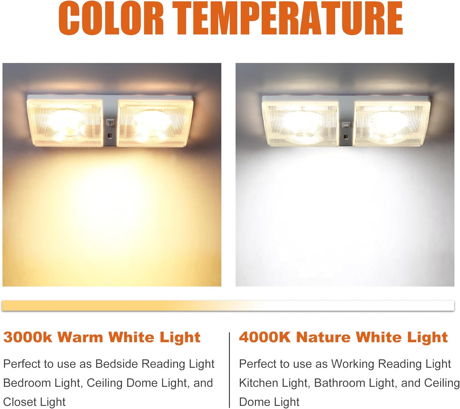 【✅Smart Dual-Tone Lighting – Set Your RV’s Mood in Seconds】Instantly switch between warm white (3000K cozy ambiance) and cool daylight (4000K task lighting) with a patented 3-way rocker switch. Perfect for late-night relaxation or early morning prep.