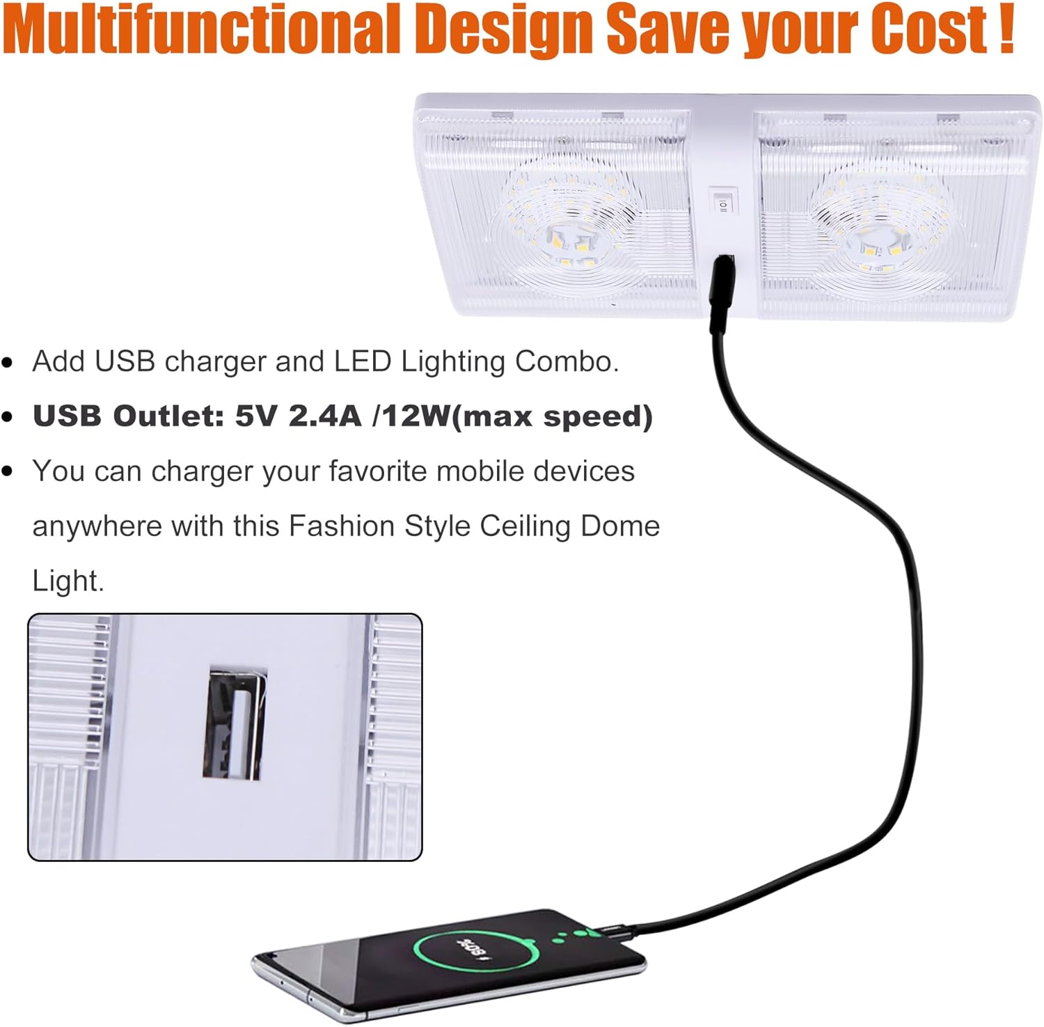 This Facon square 12V LED RV Interior Light is a great choice for any RV, motorhome, camper, caravan, trailer, or boat. It features a 5V 2.4A USB charger, an on/off switch, and two colors to choose from: 3000K warm white and 4000K cool white. The USB charger is also a great feature, as it allows you to charge your devices while you’re traveling. It’s a great addition to any RV or camping trip, and can be used in a variety of spaces, including the kitchen, bathroom, bedroom, living room, dining room, hallway, and closet. The light is made of high-quality ABS plastic and has a square surface mount design, making it easy to install. It is also energy-efficient, using only 12 volts of power, and has a long lifespan of up to 50,000 hours.