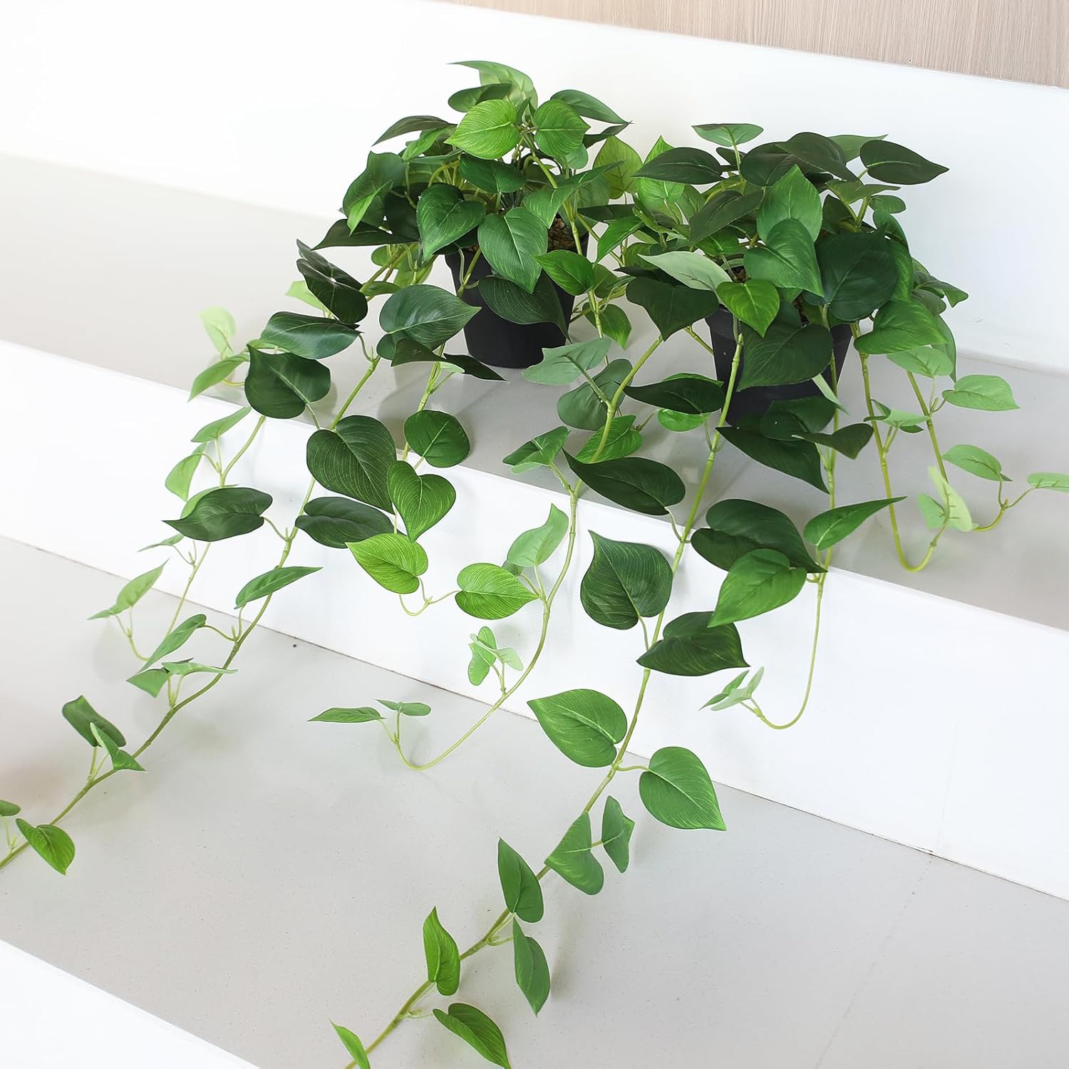 Versatile Décor – Each set includes two potted faux pothos plants that are easy to place on shelves, countertops, or in decorative planters. From modern apartments to boho bedrooms, their natural look complements all interior styles.
