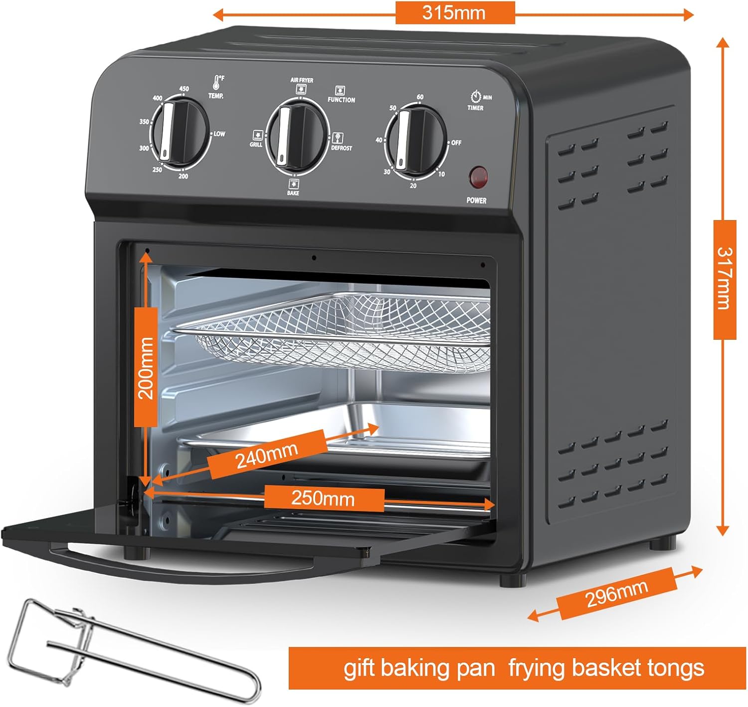 【Durable, Easy to Clean & Accessory-Rich】 Made of premium stainless steel with an anti-fingerprint finish. Comes with a frying basket, baking tray, mesh rack, and tongs. The removable crumb tray makes cleanup quick and simple after every use