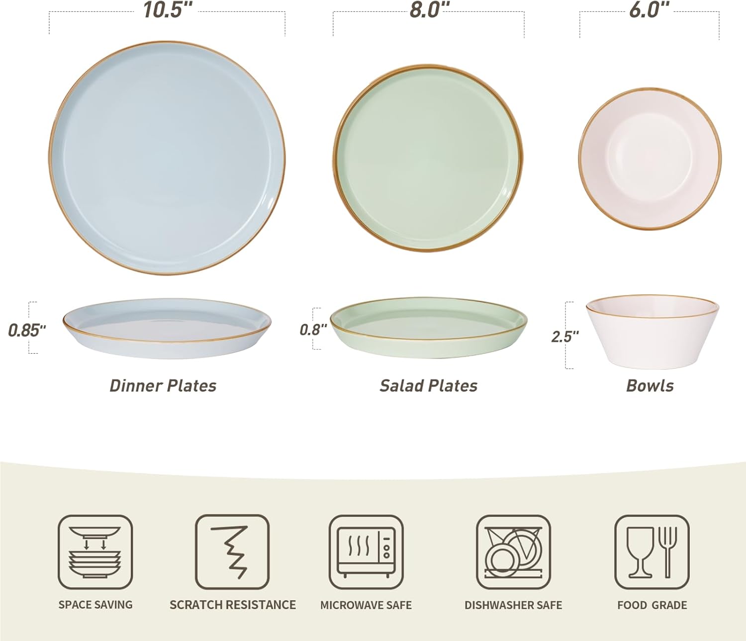 [Microwave & Dishwasher Safe]: Tested for safety in microwaves and dishwashers, this dinner set retains heat to keep food warmer longer. Perfect for daily use, holidays, or as a dishware sets gift for housewarmings and celebrations