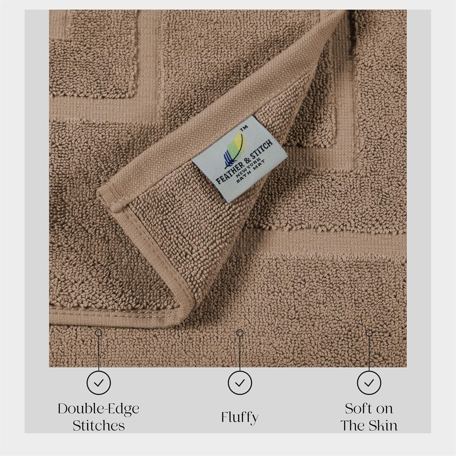 Super Absorbent Mats: 1000 GSM Double stitched edges and banded design for durability and added visual interest. The towel bath mat offers added safety and a warm, dry place to stand when you get out of the shower. sturdy construction; Includes the most durable backing that helps stay in place on your bathroom floors. Quick-drying fibers make this rug look and feel great, even with repeated use.
