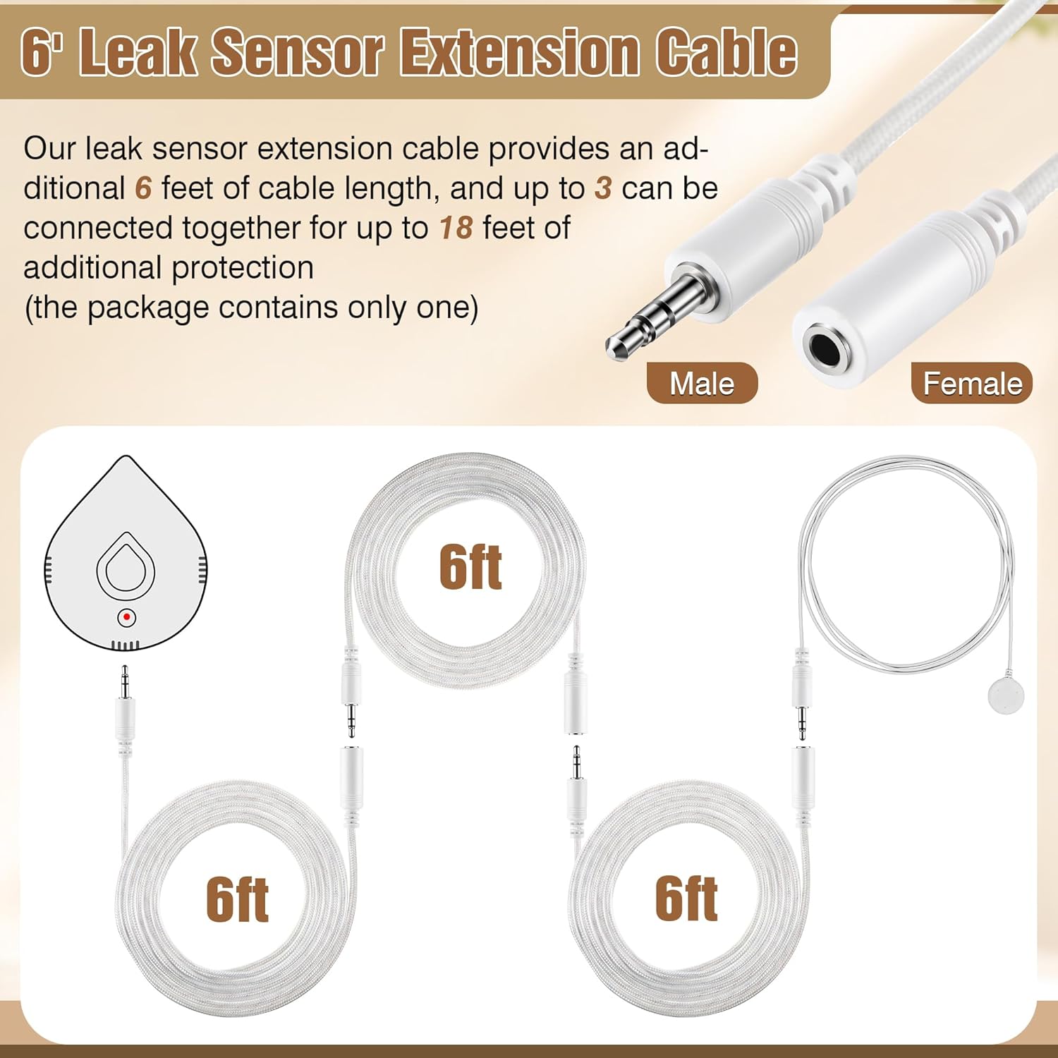 Flexibility: our leak sensor extension cable provides an additional 6 feet of cable length, and up to 3 can be connected together for up to 18 feet of additional protection to maximize leakage, water damage and mold; Ideal for monitoring around water heaters, along leaky windows, basement walls, under sinks, or other potentially leak prone areas