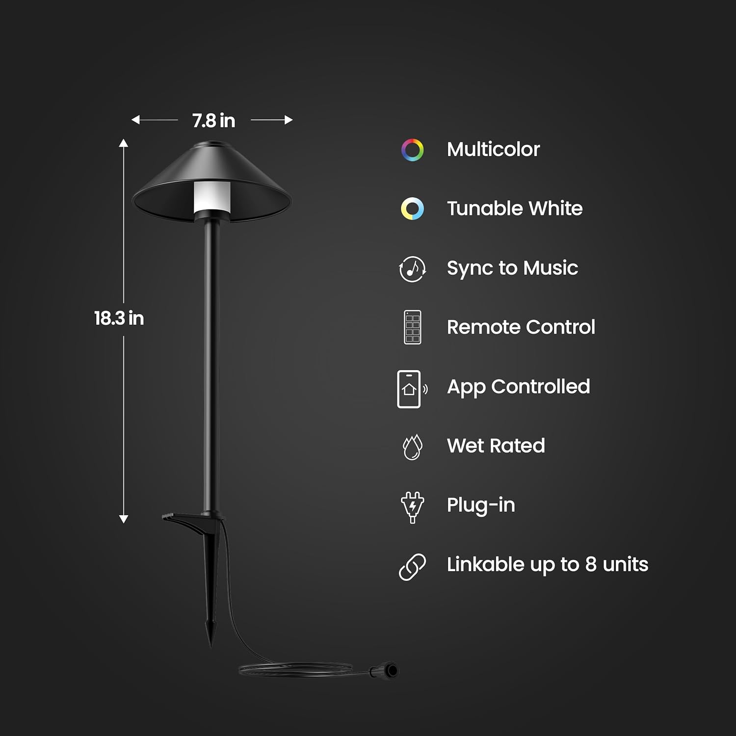 COLOR CHANGING & TUNABLE WHITE OUTDOOR CONE PATH LIGHT – Enjoy a fully customizable lighting experience with over 16 million color options and tunable white light (2700K to 5000K) to suit any occasion. Whether you’re hosting a party, creating a romantic ambiance, or lighting up pathways for safety, these lights offer versatility to match your needs.