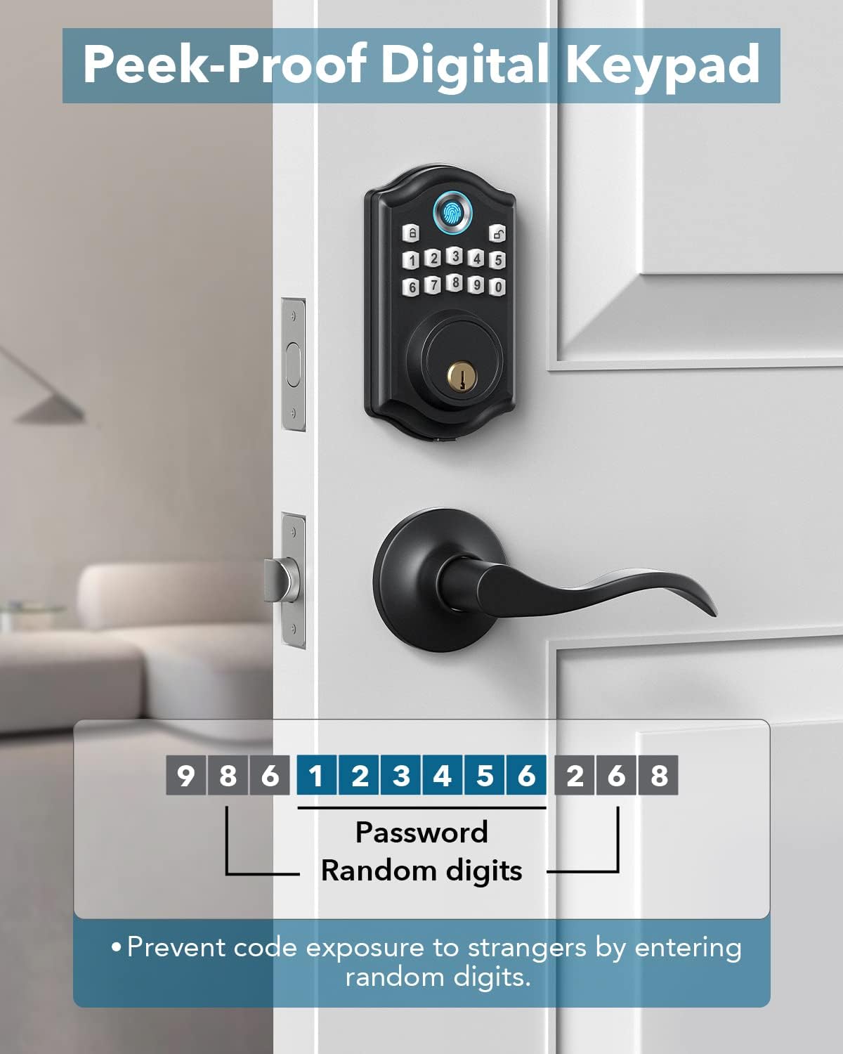 【Security Protection Deadbolt】: Anti-peek function: If you do not want others to see the password, you can add a few random numbers in front of or behind the real password, the door can still be opened, so the others can not know your real password. You can set up one-time user codes for temporary visitors before you leave home: a one-time password that will be automatically deleted after use. Note: If you enter the wrong password more than 5 times, the keypad will be locked for 1 minute.