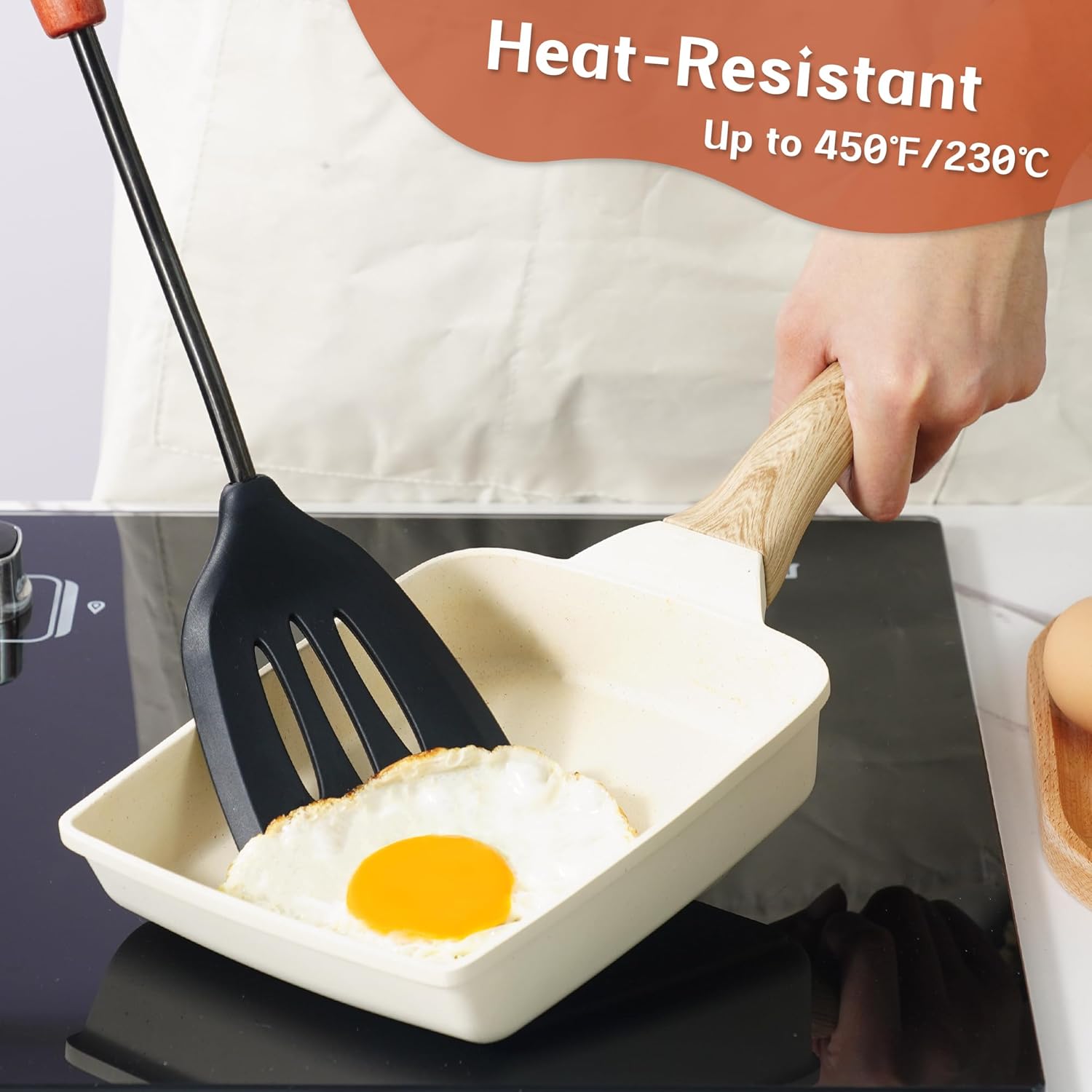 Unique design cooking utensils : Wooden handle combination of black-plated stainless steel and food-grade silicone,special and durable