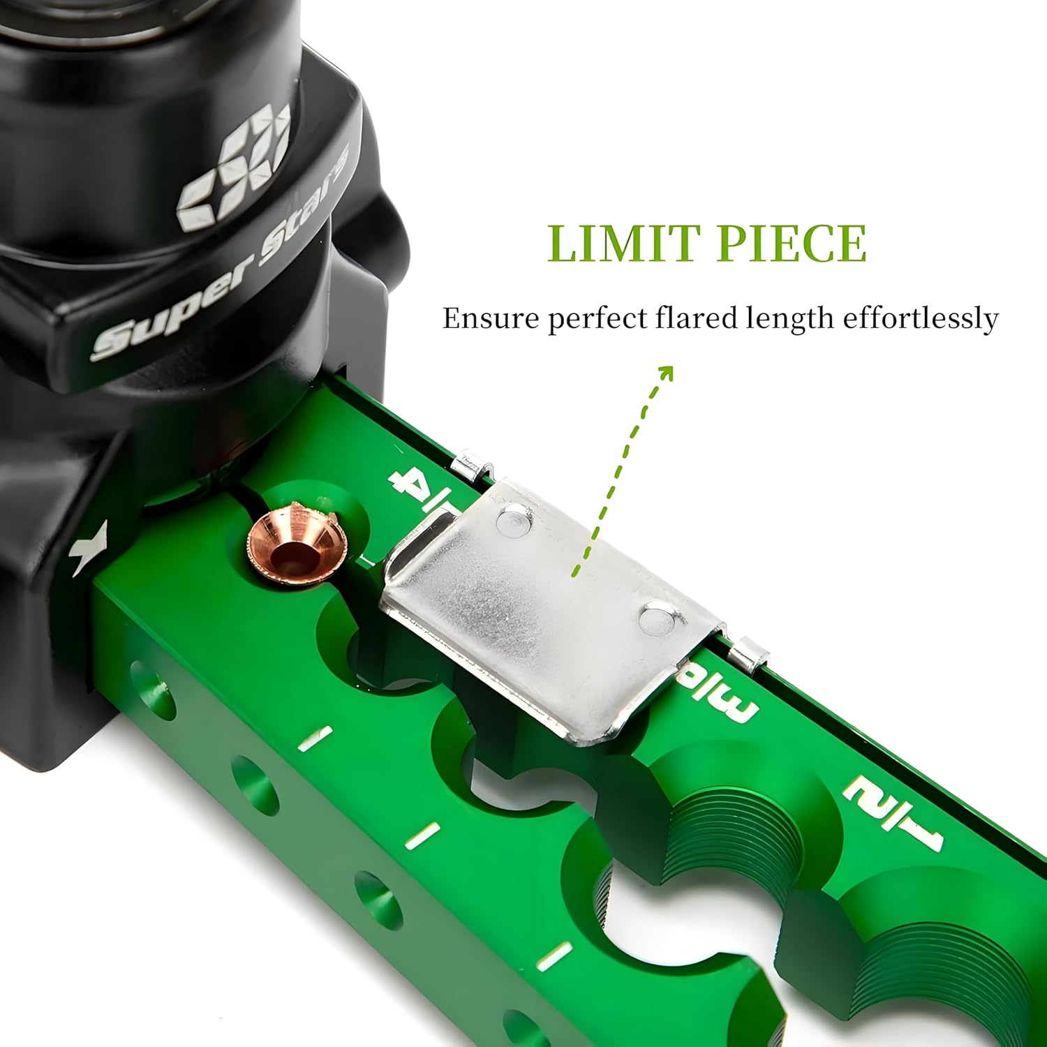 [Limit Piece & Clutch] The limit piece precisely controls the length of the flared copper tube, eliminating guesswork.The rotating handle’s clutch disengages automatically upon flaring completion.