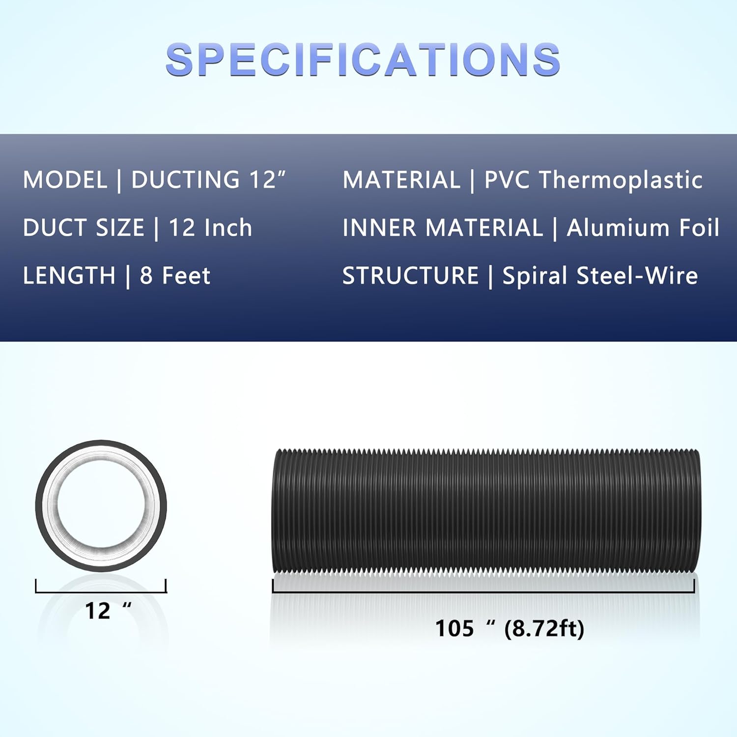 EASY TO USE: 12 Inch Duct is super flexible and easy to install, it will slide right on your Duct Fan, Vent Exhaust, Carbon Filter or Light Reflector.Use the screw to tighten the hose and clamps,the air ducting is flexible to bend with any angle.