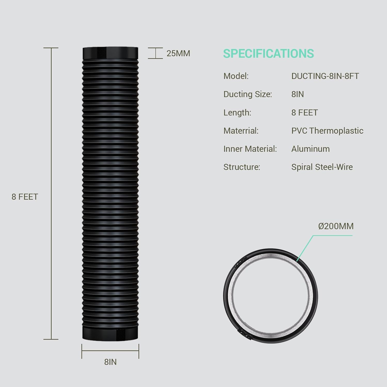 【Adjustable Length】 Ducting Size: 8” | Length: 8 feet | Could cut the length according to your needs