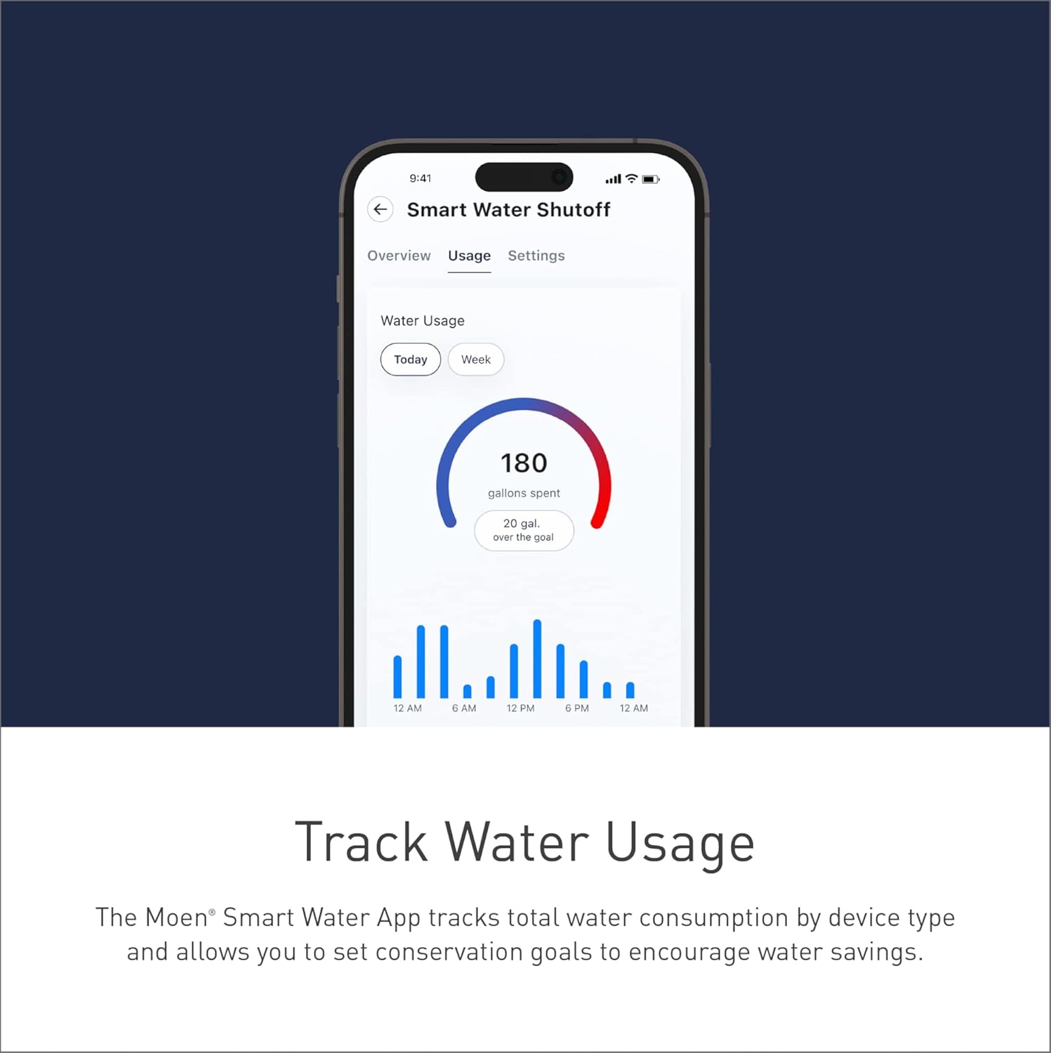 APP DASHBOARD: See how much water you’re consuming daily and set conservation goals to encourage saving water and money for your home