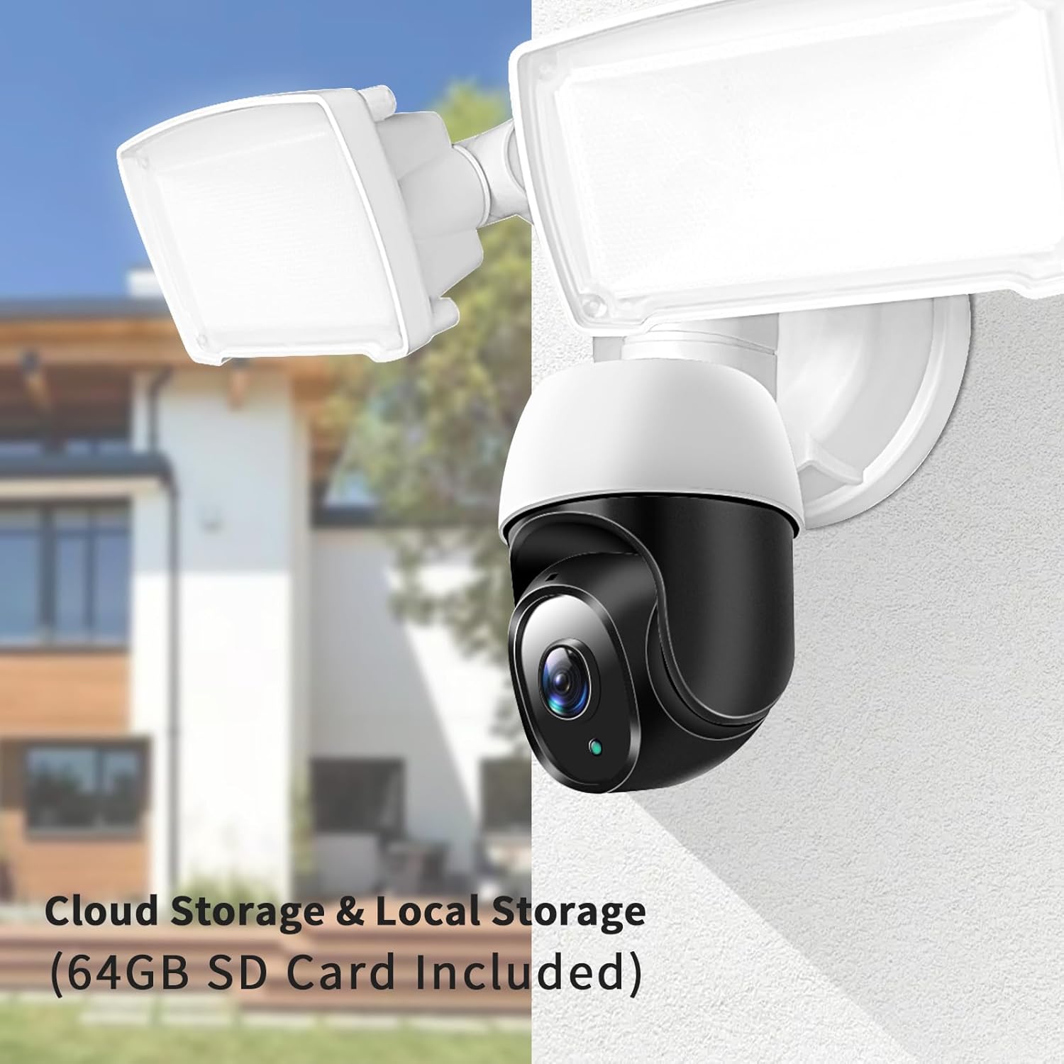 【Biult in 64GB TF Card & IP65 Waterproof】: Our flood light camera built-in 64GB TF card for hassle-free storage—no cloud subscription required! With IP65 waterproof, it’s perfect for all weather conditions, ensuring reliable outdoor surveillance. Elevate your home security while extending your camera’s lifespan!
