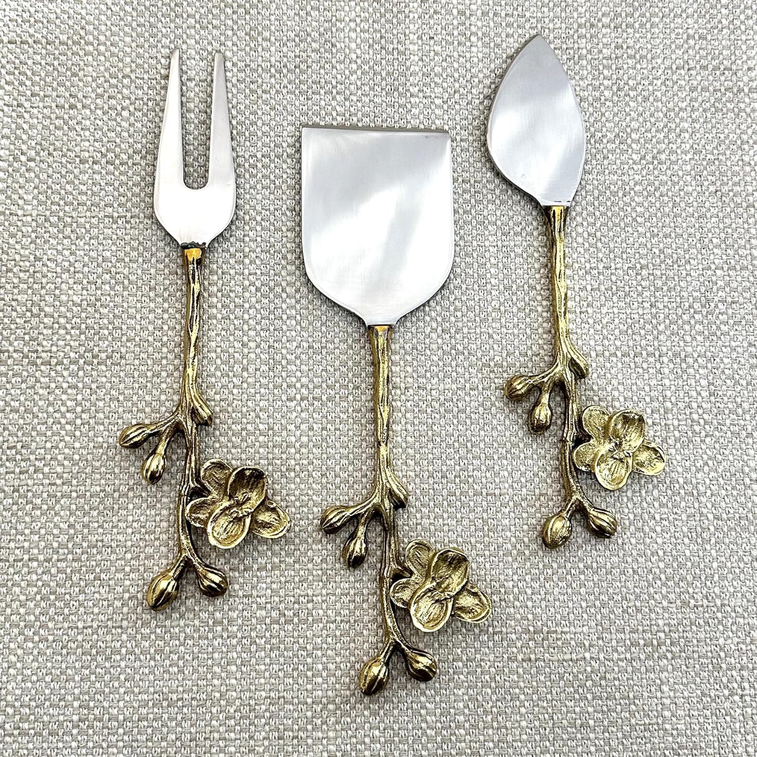Each tool in this set features handles adorned with intricate floral patterns, transforming your cheese board into a canvas of natural beauty