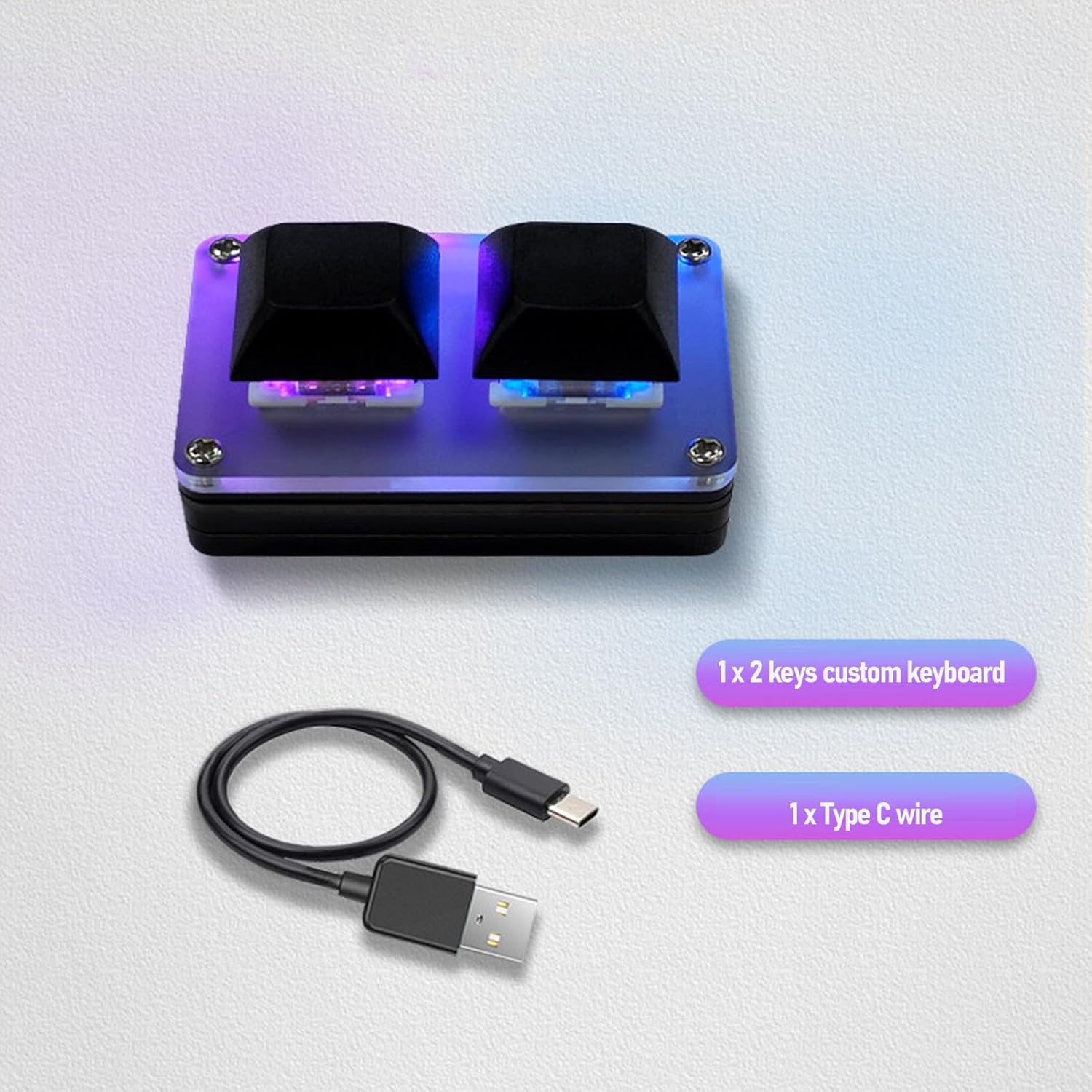 Focket Mini Smart Gaming Keypad, 2 Key Compact Wired USB-C Keyboard with RGB Lighting, Programmable Macros, Self Set Keys for PC Game