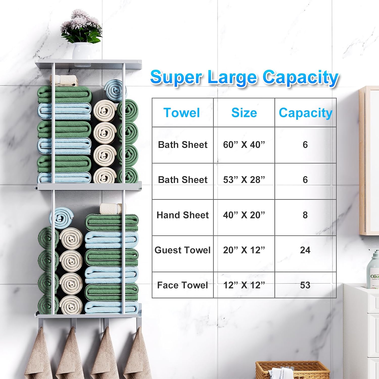 Using the size of 12.4inch*3.1inch*2.17inch, it can accommodate more towels and bath towels