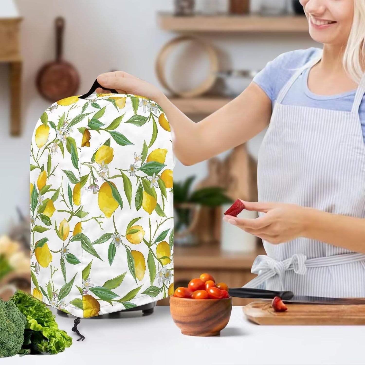 Food Processor Cover with Top Handle Blender Cover for Kitchen Appliance Adjustable Drawstring Stand Mixer Appliance Covers for Kitchen Counter, Lemon Flower