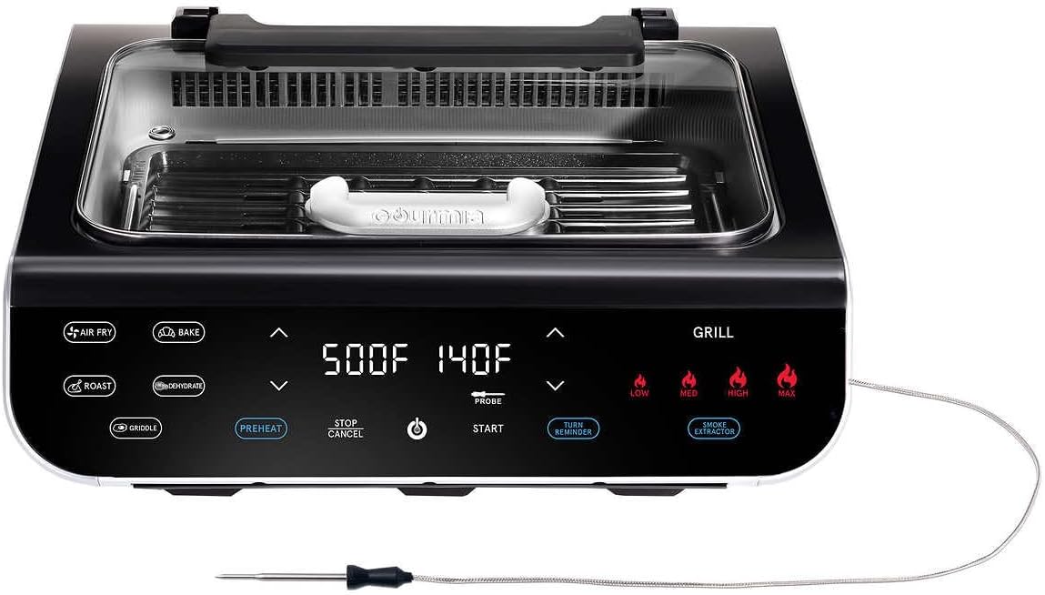 It is introducing the Gourmia Food Station Smokeless Grill, Griddle & Air Fryer GGA2180, the item that has been used previously. The item may have some signs of cosmetic wear but is fully operational and functions as intended. This item may be a floor model or store return that has been used. Please review the photos to see exactly what items are shipping. I took all the posted photos of the actual item and its attachments. The item has been taken out of the box, it may have some signs of touching, but generally, in good condition, all accessories included, and the item comes in its original package.