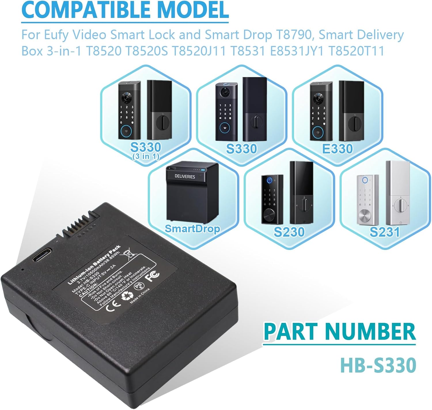 For Eufy S330 doorbell camera battery: for S330 (3 in 1), E330, S230, S231 S220 video smart lock and smart drop T8790, Smart Delivery Box 3-in-1 T8520 T8520S T8520J11 T8531 E8531JY1 T8520T11. With advanced lithium-ion technology, this battery offers consistent and efficient power