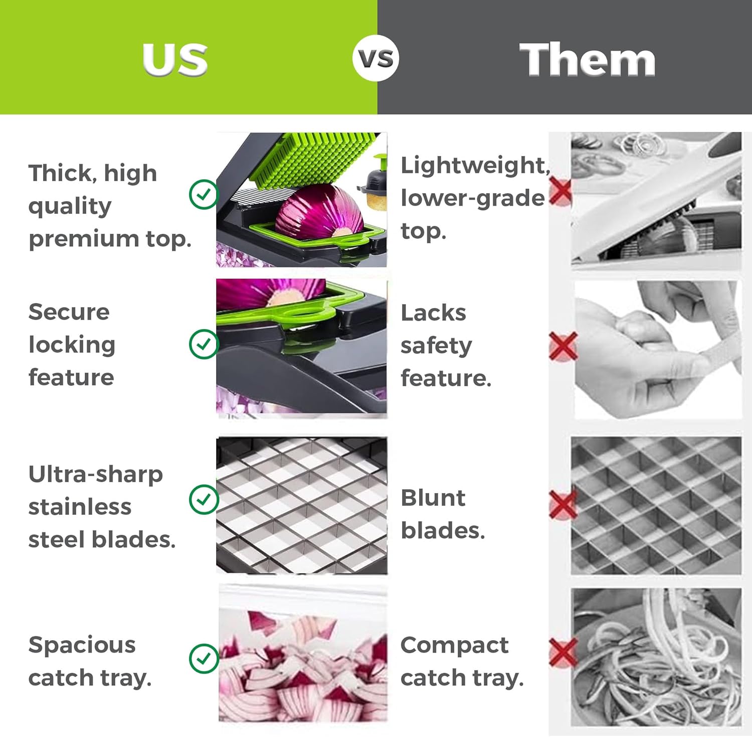Fourteen Homes Vegetable Chopper with Container – Cheese Grater Hand Crank – Mandoline Slicer for Veggies, Onions, Fruit, Potatoes – Salad Slicer -14 in 1 Veggie Chopper