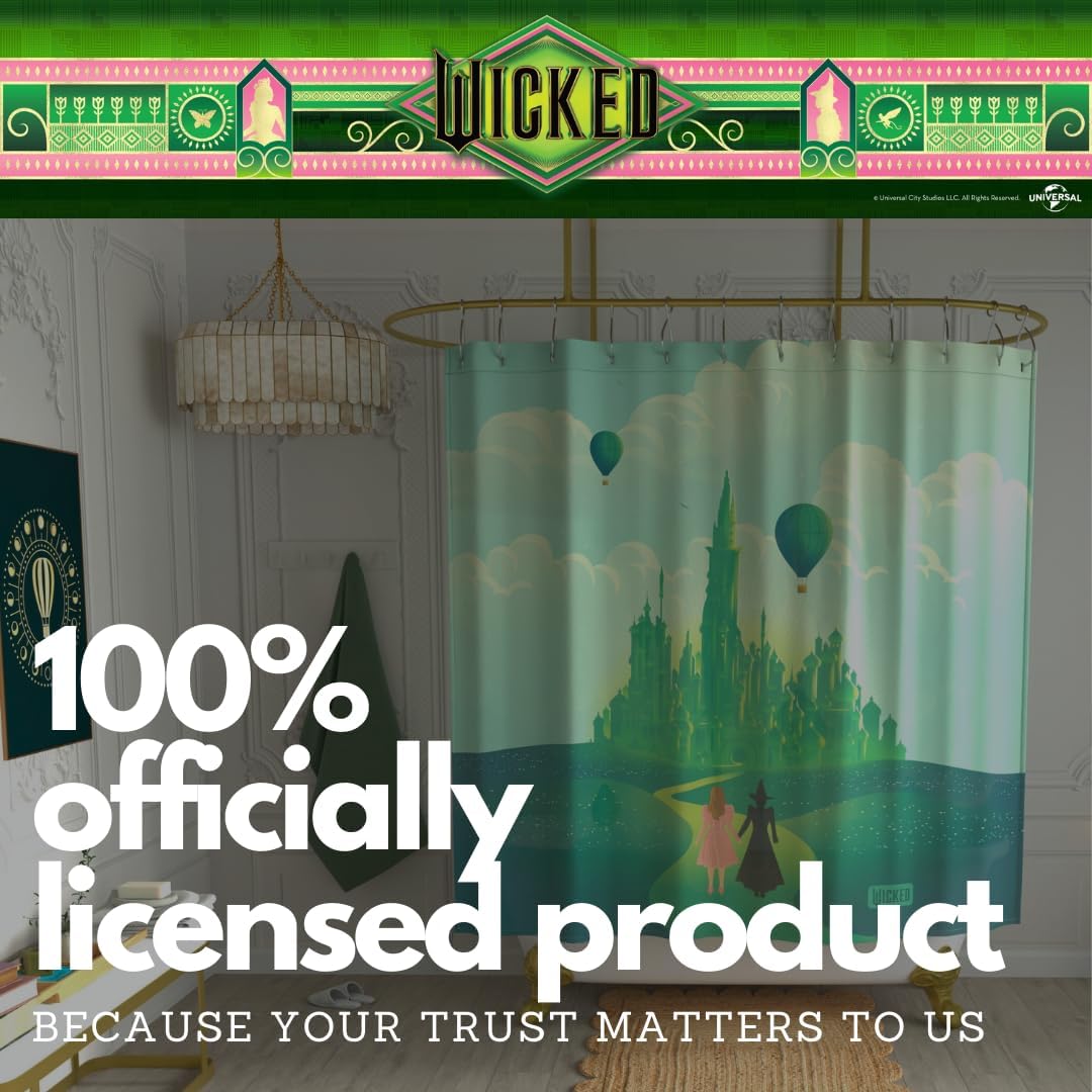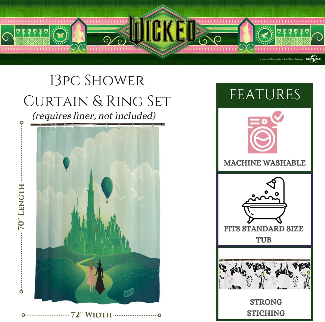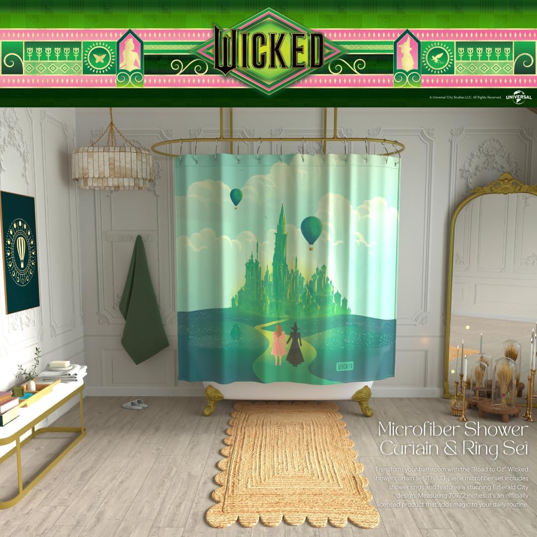 WICKED DESIGN: Transform your bathroom with the “Road to Oz” Wicked shower curtain set. This 13-piece microfiber set includes shower rings and features a stunning Emerald City design. Measuring 70×72 inches, it’s an officially licensed product that adds magic to your daily routine.