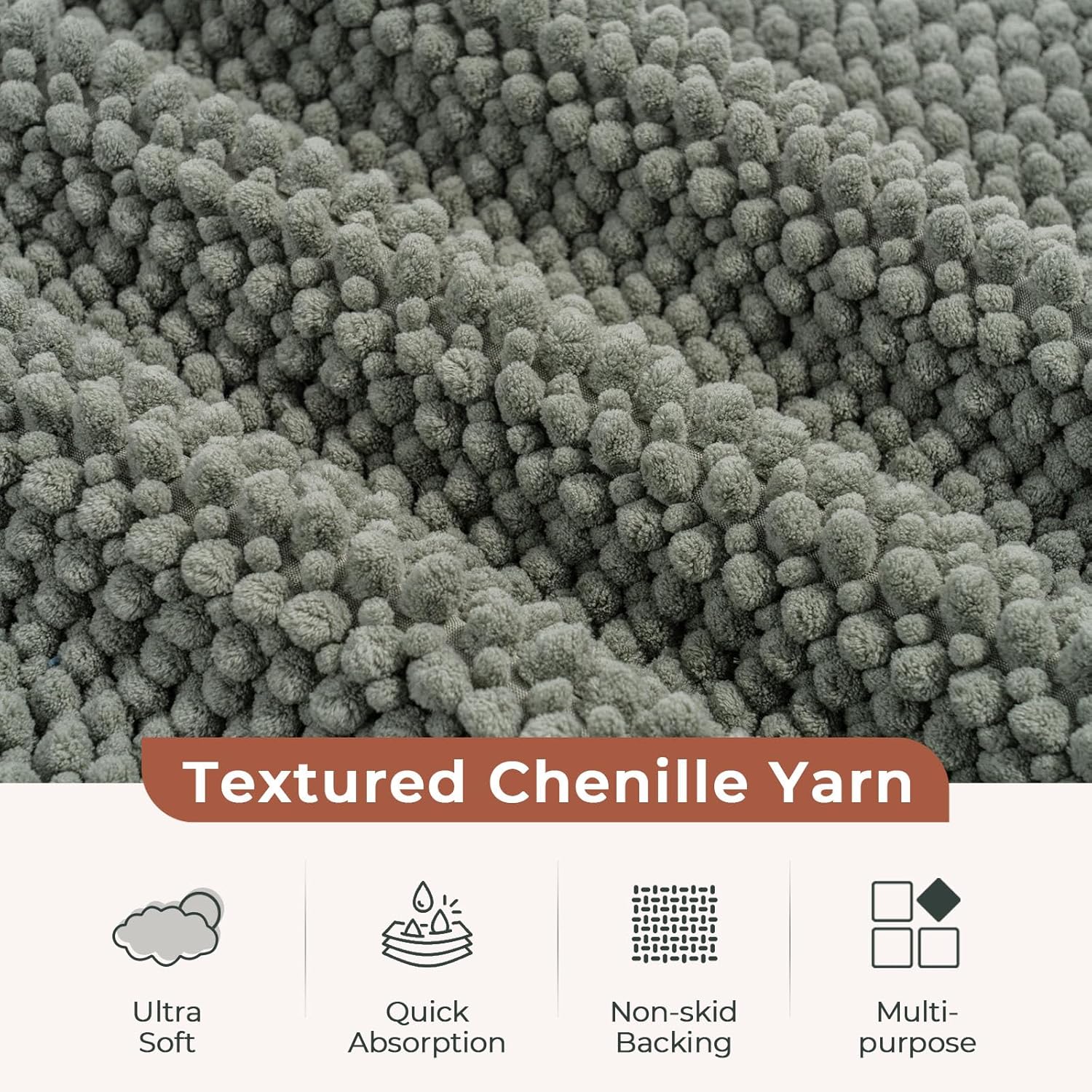 Non-slip Backing – Our chenille bath rug is designed with an ultra hot-glue anti-slip backing that provides safe footing for your family. It keeps the mat securely in place, preventing slips and falls on any surface.
