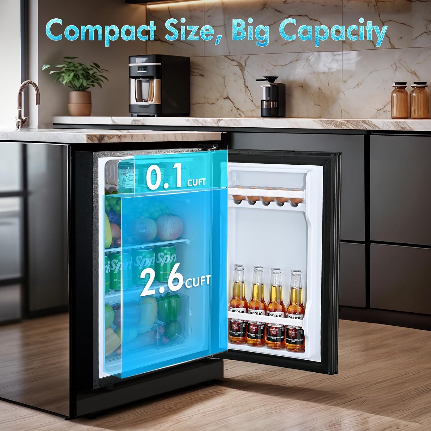 Maximize Storage For Any Space: The Anypro fridge with freezer boasts a 2.7 cu.ft capacity in a sleek, space-saving single-door design, perfect for kitchen, apartment, dorm, and RV. The fridge fits seamlessly into tight spaces at 17.5 x 16.7 x 28.2 inches while offering ample storage. Whether you’re a student needing a portable refrigerator in dorm room or a worker seeking extra storage in office, this fridge is designed to meet your needs without taking up too much room.