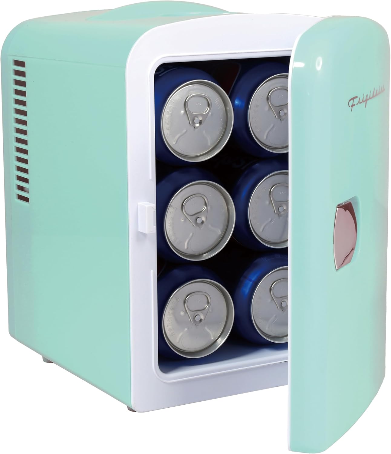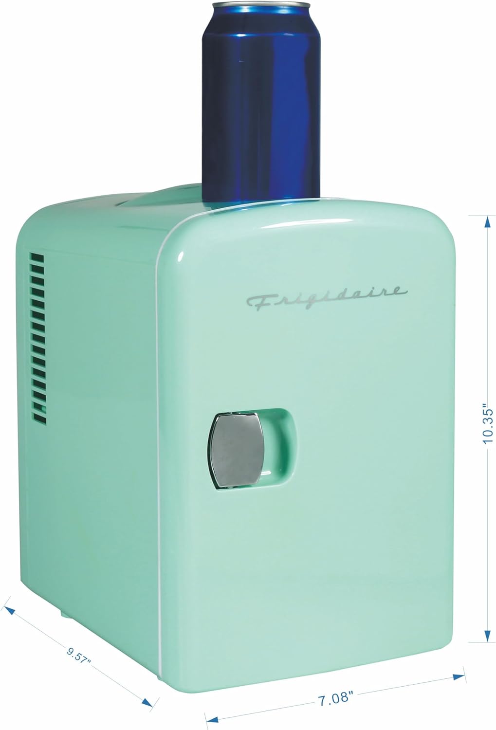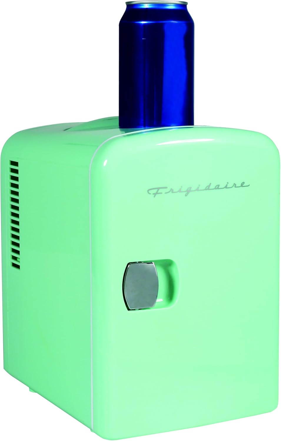 MINI FRIDGE, MAXIMUM CHILL. The Frigidaire Portable Personal Fridge keeps your food and drinks the perfect temperature while at home and on the go. The ultimate versatile cooler, this mini fridge goes on with just the flip of a switch. Cools up to 32°F below ambient temperature, and warms up to 140°F at an ambient temperature of 75°F. Compact space saving design and lightweight features make it easy to take with you anywhere, yet can still fit your needs; 4 Liter capacity chills six 12 oz. cans, while a removable shelf makes it easy to store milk, juice, yogurt, bottles, smoothies, cheese, fruit, coffee, soup, and many more home cooked meals or beverages. Perfect for personal spaces, bedrooms, offices, hotels, boats, carpools, soccer games, sporting events, backyard BBQ, pool parties and more! Conveniently plugs into standard home outlets and 12V car chargers so you can take with you anywhere you go. 100% Freon-Free and and cETL approved with advanced safety technology for long-lasting durability.