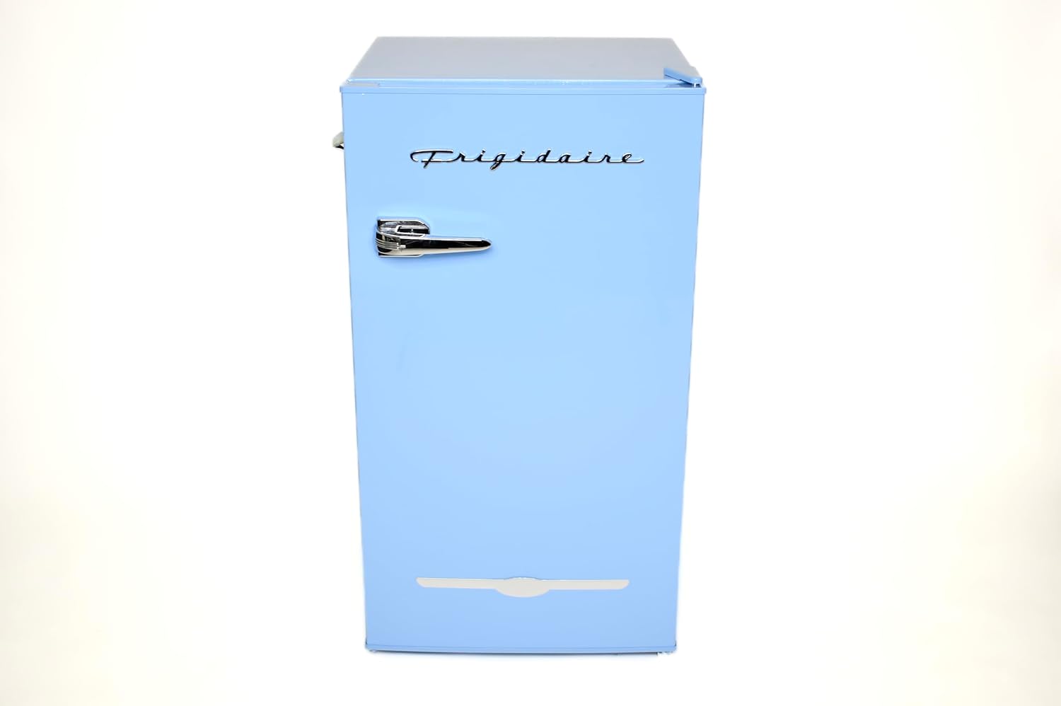 Frigidaire Retro Compact Fridge with Chiller, 3.2 cu ft Countertop Fridge with Built-In Bottle Opener, Compact Refrigerator for Office, Bedroom, Dorm Room or Cabin – 16.5″ D x 19″ W x 31″ H (Blue)