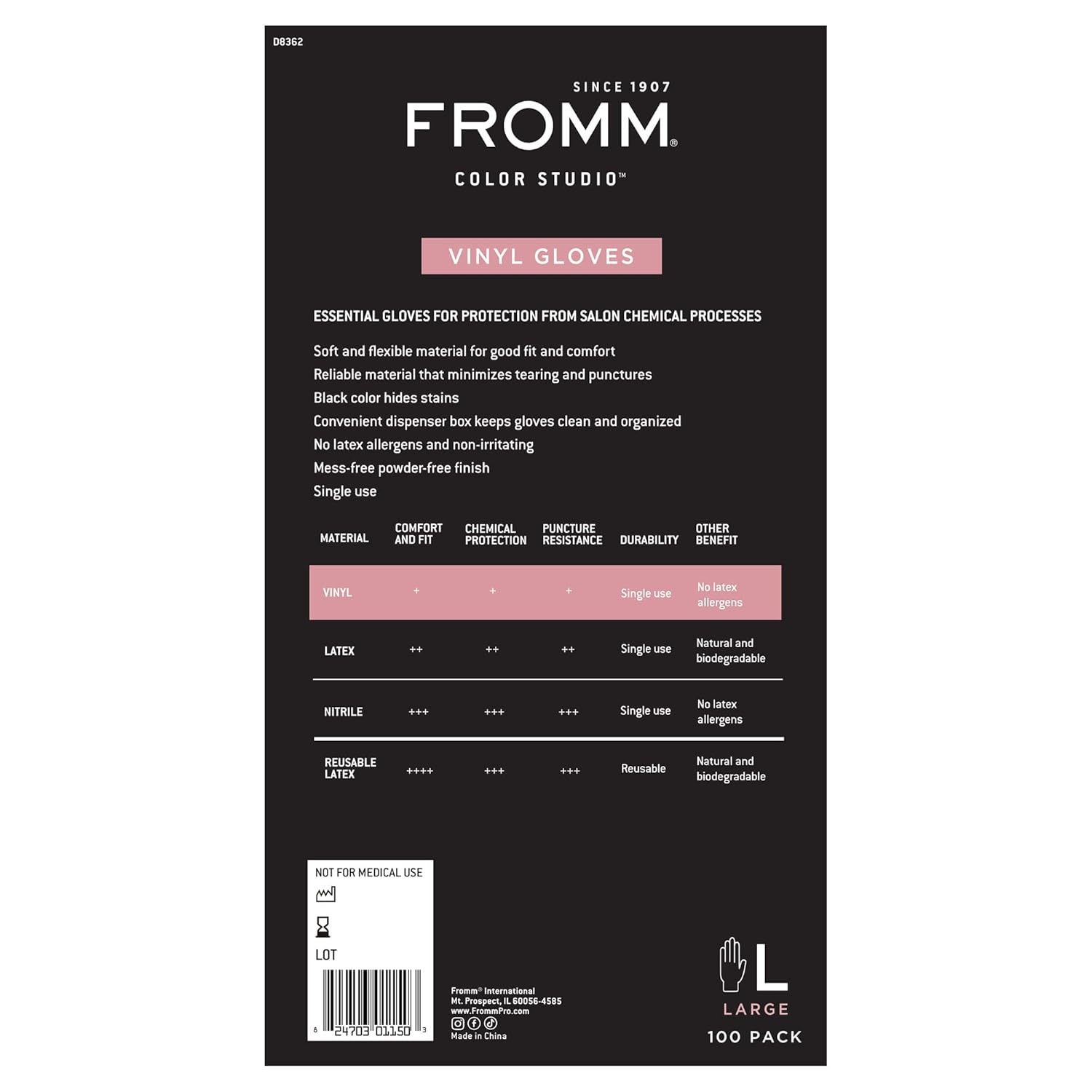 No Latex Allergens – Non-Irritating. Black Color Hides Stains