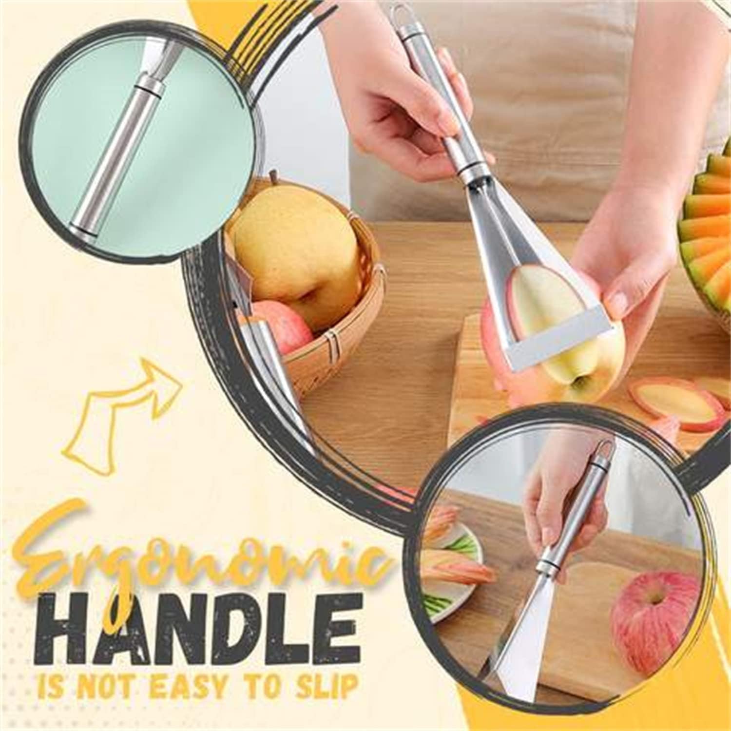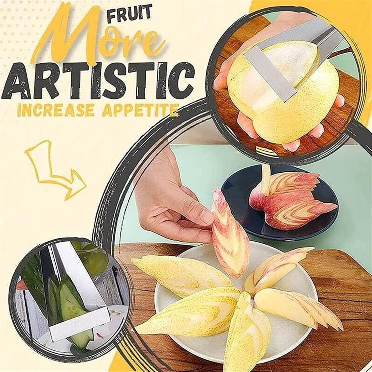 【Multi-function】: Unique design, functions include carving and peeling. An indispensable handy kitchen tool that can easily cut apples, watermelons, cucumbers, dragon fruits, and other fruits.