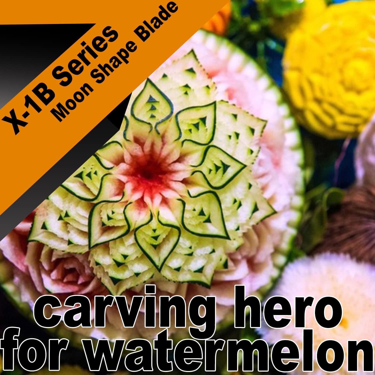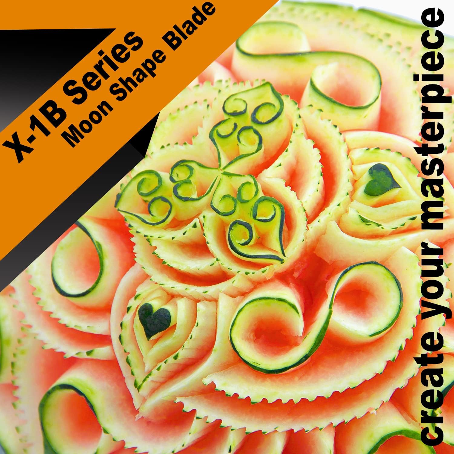 🔆 VALUE PACK FOR BEGINNER: Professional Art X-1A Pointed Tip Blade or Professional Art X-1B Moon Shape Blade / Super Sharp Stainless Steel Blades from German Standard with very durable handle for your Fruit and Vegetable Carving Project, Soap Carving. Perfect for restaurant, chef, and cook.