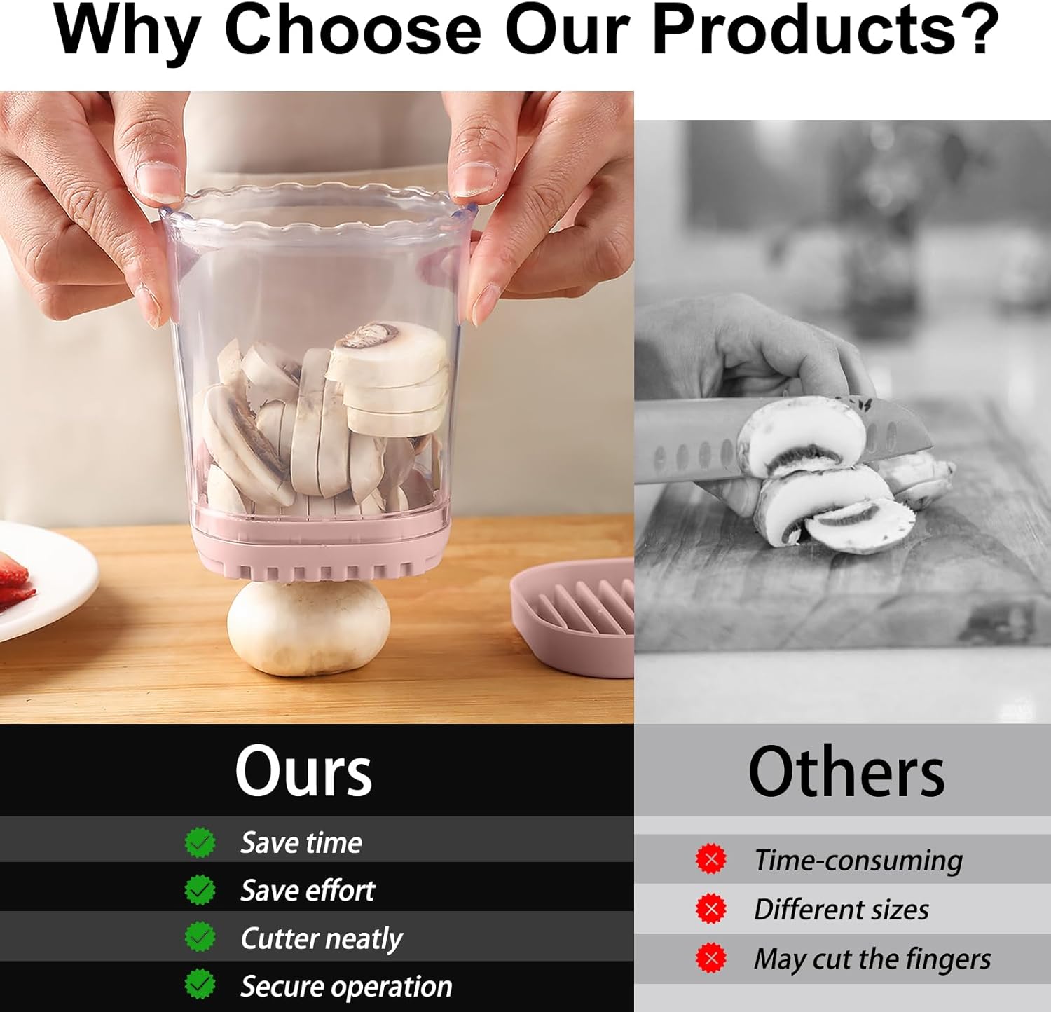 Fruits Slicer: Fruit Slicers 8 times faster than a knife! Our fruit cutter makes prep a breeze. Easily cut 18 strawberries in 9 seconds, saving you time and energy. With this fruit chopper you can easily slice fruits and vegetables into more uniform shapes, save your time and make slicing fruits a breeze.