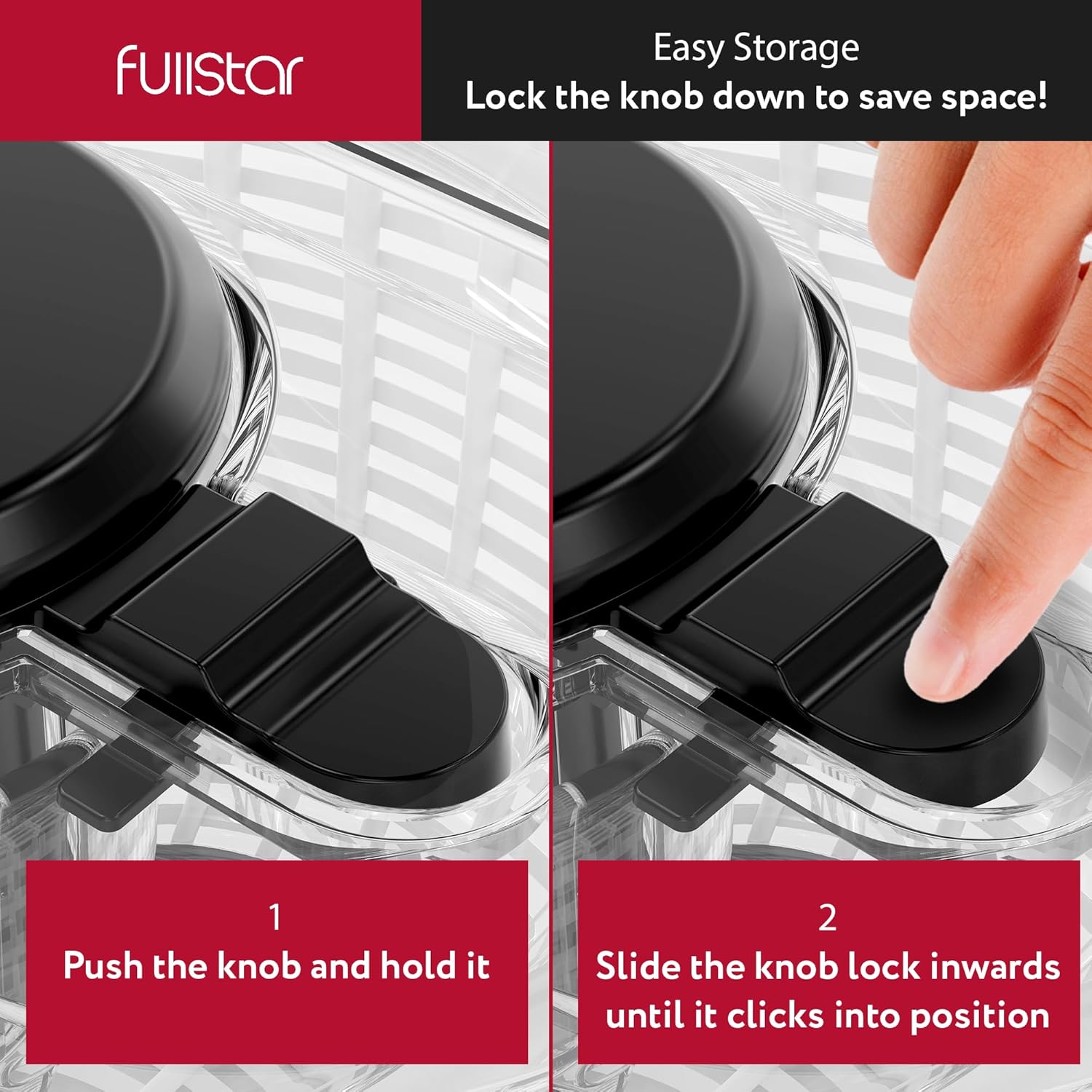 Large Capacity, Compact Storage – The Fullstar fruit dryer spinner offers a generous 6.3 quart capacity, perfect for family meals. Its innovative storage lock design ensures it fits snugly in your cabinets, combining size and convenience in one.