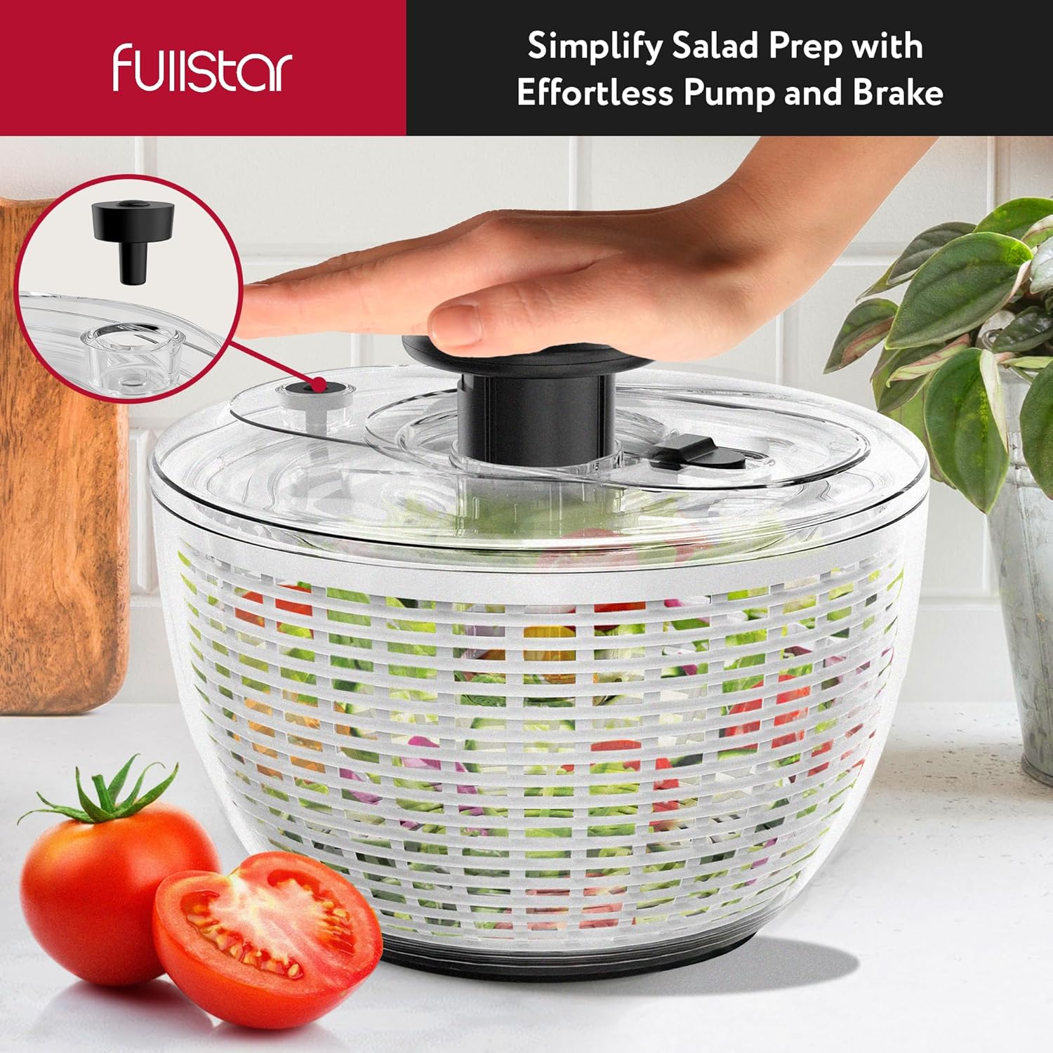 Revolutionary Salad Spinner – Master your salad prep with Fullstar’s salad spinner! Its easy one-hand pump mechanism transforms tedious spinning into a swift, enjoyable experience, making it the ultimate lettuce spinner for your kitchen.